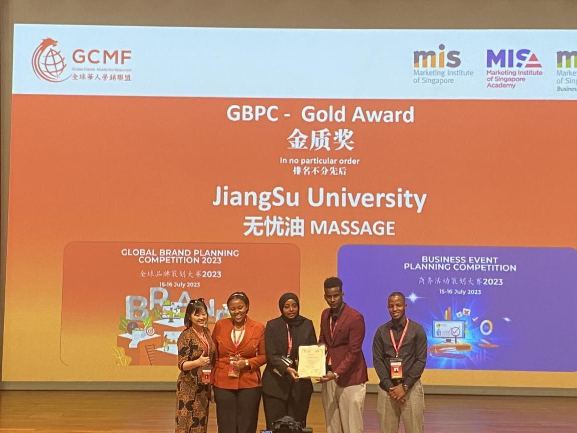 7月15日至16日,2023年全球品牌策劃大賽總決賽在新加坡舉行。比賽由中國國際貿易促進委員會商業行業委員會和全球華人營銷聯盟主辦。我校來華留學生組建的“無憂油”團隊獲得金獎(大賽僅4項,來華留學生團隊唯一)和最佳團隊展示獎(大賽唯一)。這是我校學生首次入圍總決賽,首次獲得金獎。