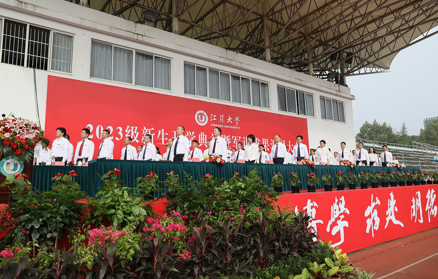 典禮上,校長邢衛(wèi)紅講話,代表學(xué)校向全體2023級(jí)新生表示熱烈歡迎,向辛勤指導(dǎo)訓(xùn)練的軍訓(xùn)教官致以崇高敬意。邢衛(wèi)紅說,江蘇大學(xué)歷史悠久、底蘊(yùn)深厚,鴻儒云集、人才輩出,特色鮮明、使命光榮,同學(xué)們?cè)谶@里求學(xué)逐夢(mèng),故事會(huì)更加精彩,將來大有可為。邢衛(wèi)紅用三句話與全體新生共勉:一是“博學(xué)”,把學(xué)習(xí)作為第一任務(wù),在博學(xué)善思中筑牢成長根基;二是“求是”,把創(chuàng)新作為第一本領(lǐng),在求是探索中增長智慧才干;三是“明德”,把人品作為最高學(xué)歷,在明德篤行中擔(dān)當(dāng)時(shí)代大任。邢衛(wèi)紅希望全體新生惜時(shí)如金、晴耕雨讀,在“博學(xué)、求是、明德”校訓(xùn)和“自強(qiáng)厚德,實(shí)干求真”江大精神指引下,創(chuàng)造更多精彩,成就美好將來。她也提出一個(gè)小希望:同學(xué)們要養(yǎng)成習(xí)慣,每天給家人報(bào)平安、與家人分享校園生活。