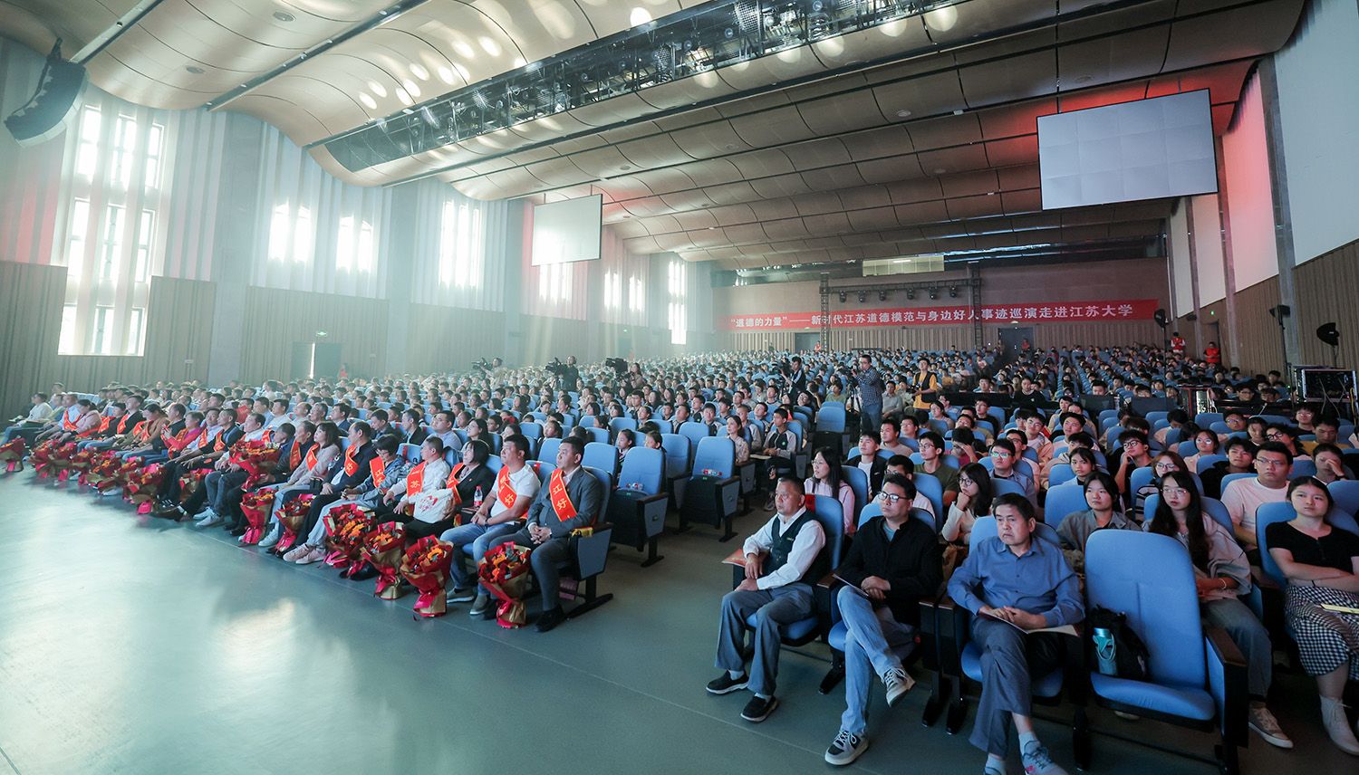 10月25日,由中共江蘇省委宣傳部、江蘇省文明辦、江蘇省教育廳主辦,江蘇省廣播電視總臺、江蘇大學(xué)、中共鎮(zhèn)江市委宣傳部、鎮(zhèn)江市文明辦、鎮(zhèn)江市教育局承辦的“道德的力量”——新時代江蘇道德模范與身邊好人事跡高校巡演走進(jìn)我校。
