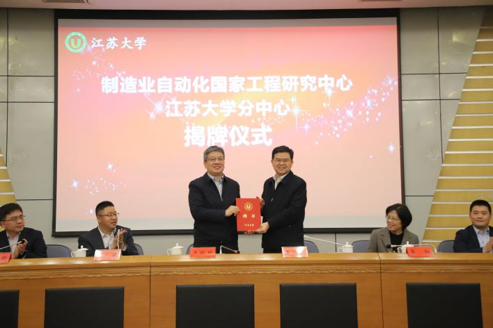 李紅和劉新共同為制造業(yè)自動化國家工程研究中心江蘇大學(xué)分中心揭牌。