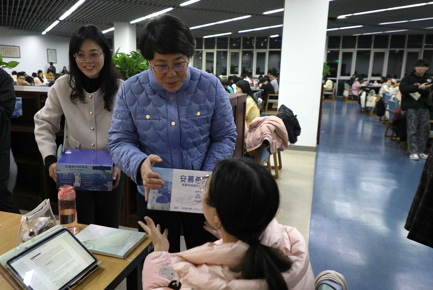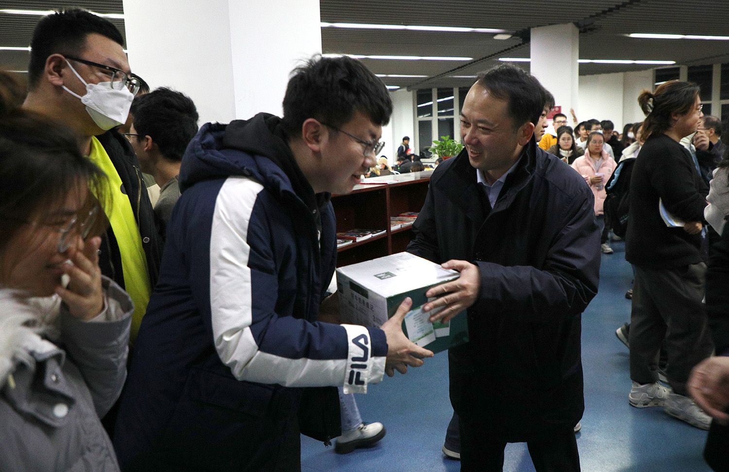 11月30日晚10點,校長邢衛紅、副校長任旭東一行走進圖書館,看望考研學子,發放慰問品近千份,為奮戰考研的莘莘學子送去親切關懷和溫暖祝福。