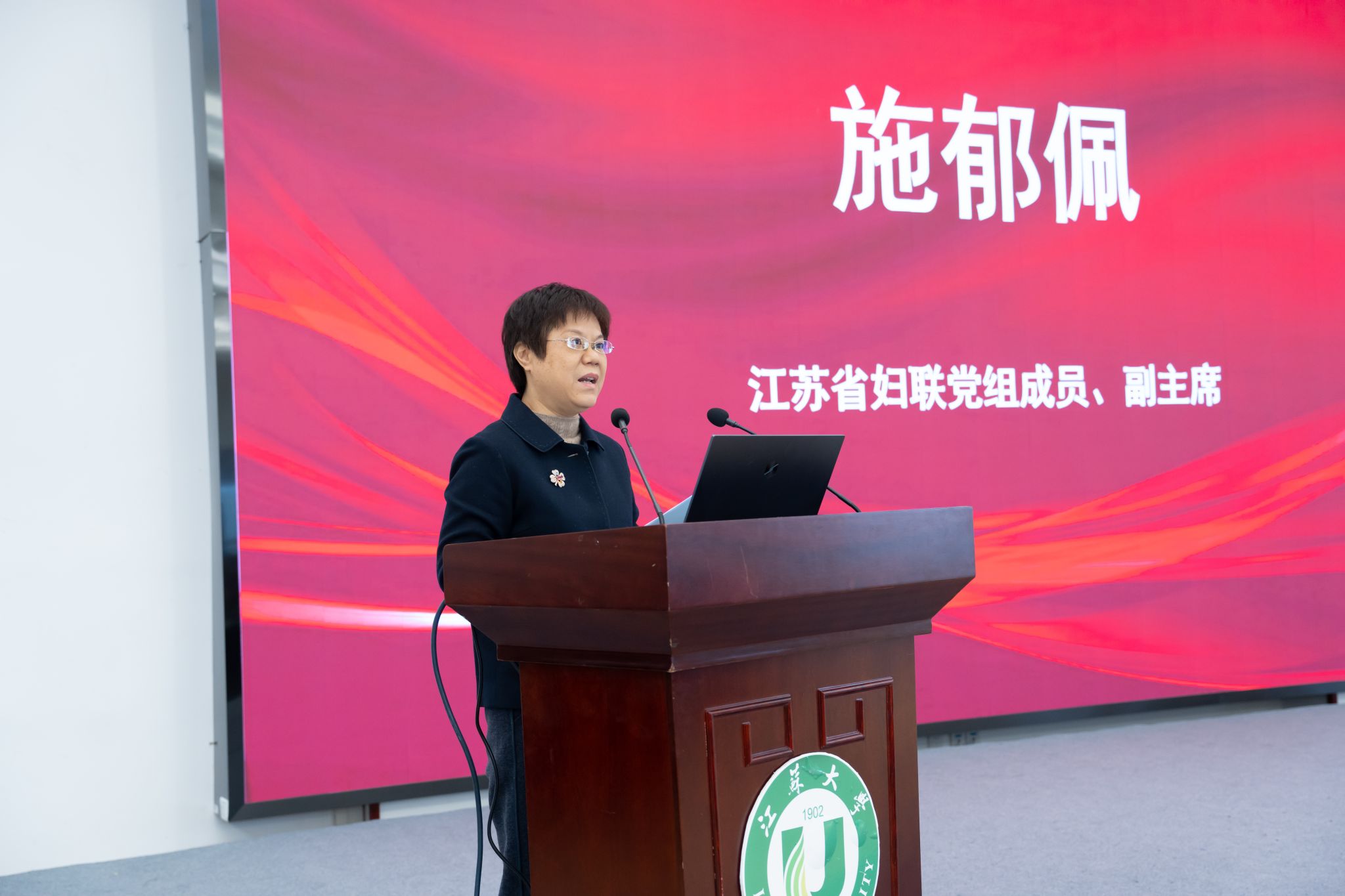 施郁佩傳達了學習習近平總書記在中央經濟工作會議的重要講話精神,表示要深入學習貫徹習近平總書記同全國婦聯新一屆領導班子成員集體談話時的重要講話精神,落實好中國婦女十三大和江蘇省婦女十四大部署,積極踐行習近平總書記賦予江蘇“在科技自立自強上走在前”“在科技創新上取得新突破”的重大任務要求,實施“五個一百”計劃,持續深化科技創新巾幗行動,激發女性創業創新活力,積極投身中國式現代化江蘇新實踐。