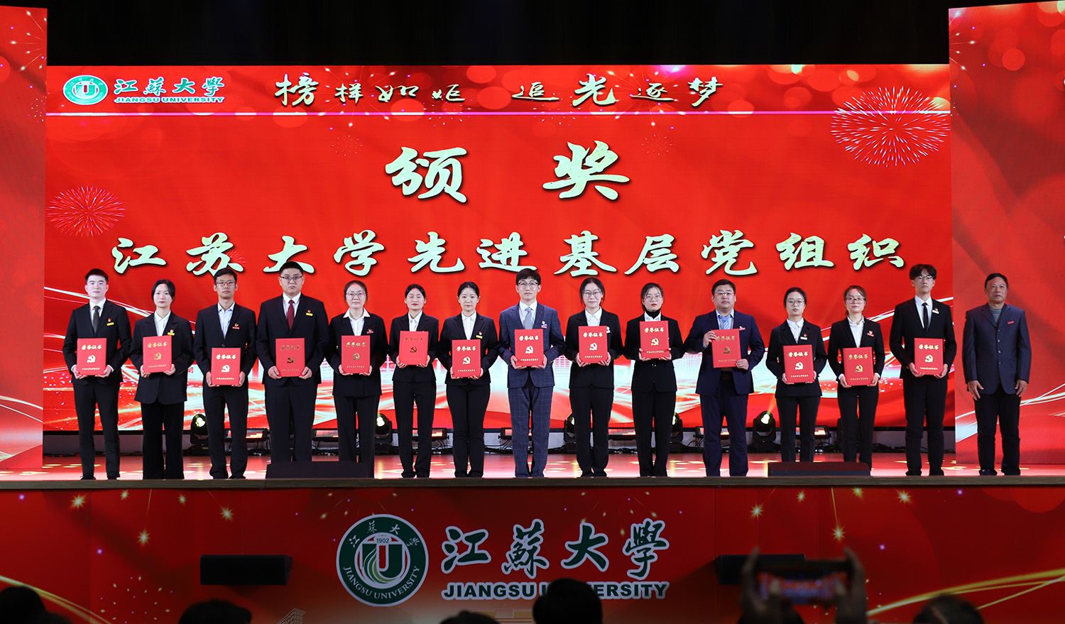校關(guān)工委常務(wù)副主任柴順根、黨委辦公室主任施進(jìn)華為2023年度校先進(jìn)基層黨組織代表頒獎(jiǎng)。