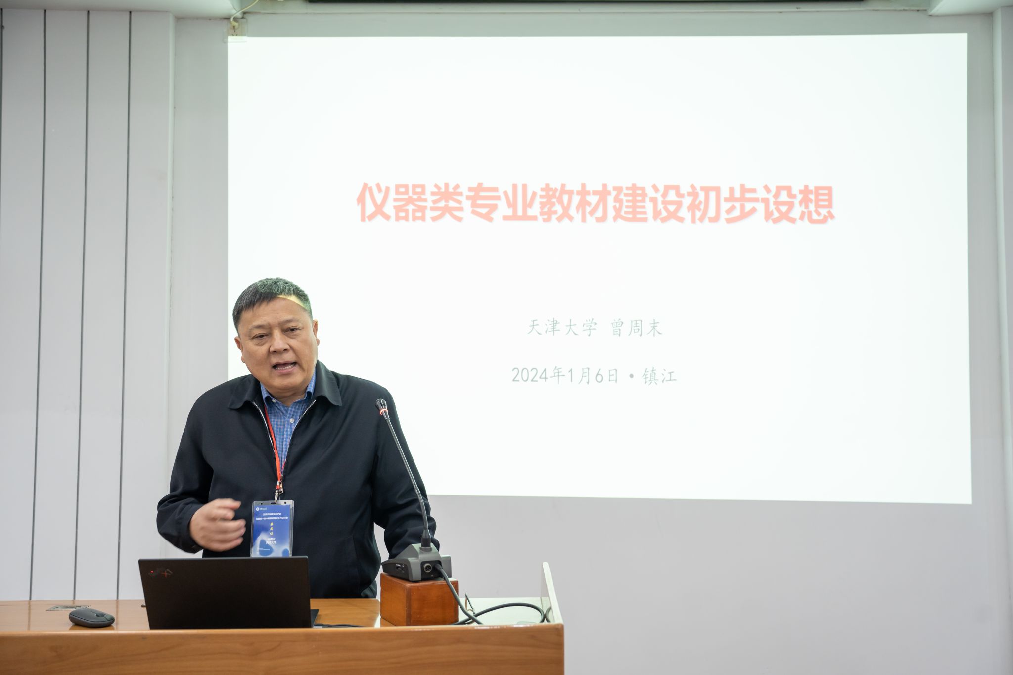 教育部高等學校儀器類專業教學指導委員會主任、天津大學教授曾周末以“儀器類專業教材建設初步設想”為主題,宋愛國以“優秀教材建設的一些經驗與體會”為主題,中國氣象水文海洋儀器學會副理事長、南京信息工程大學教授行鴻彥以“國家一流課程教材建設分析與思考”為主題,作特邀報告。