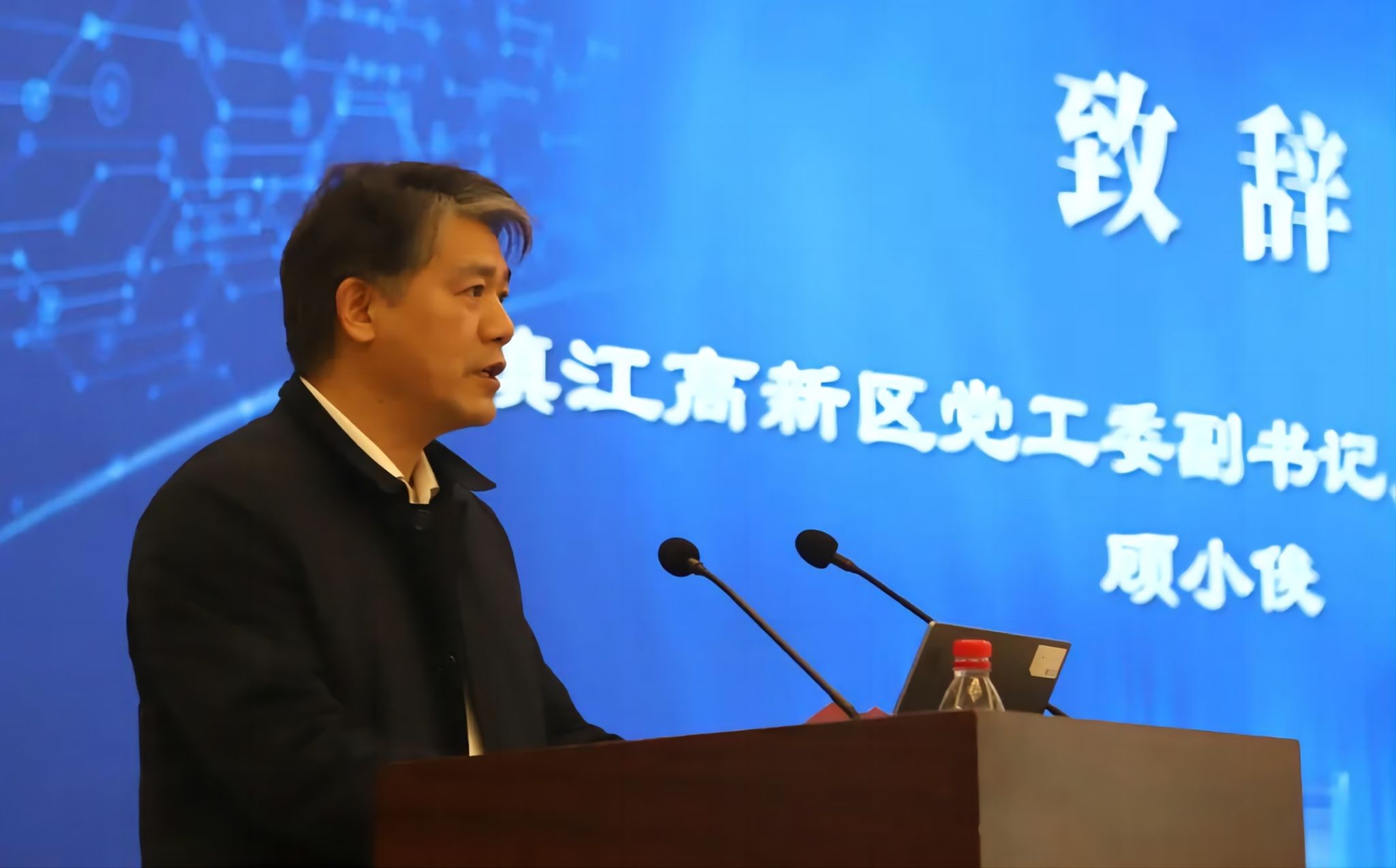 共建合作單位代表、鎮江市高新區黨工委副書記、管委會主任顧小俊在成立儀式上致辭。