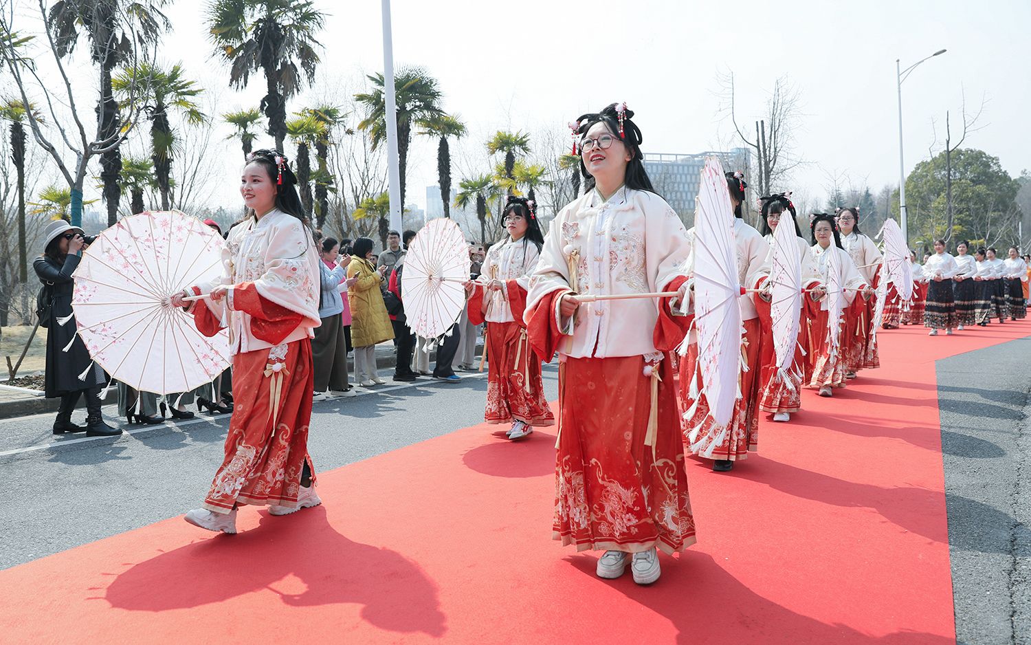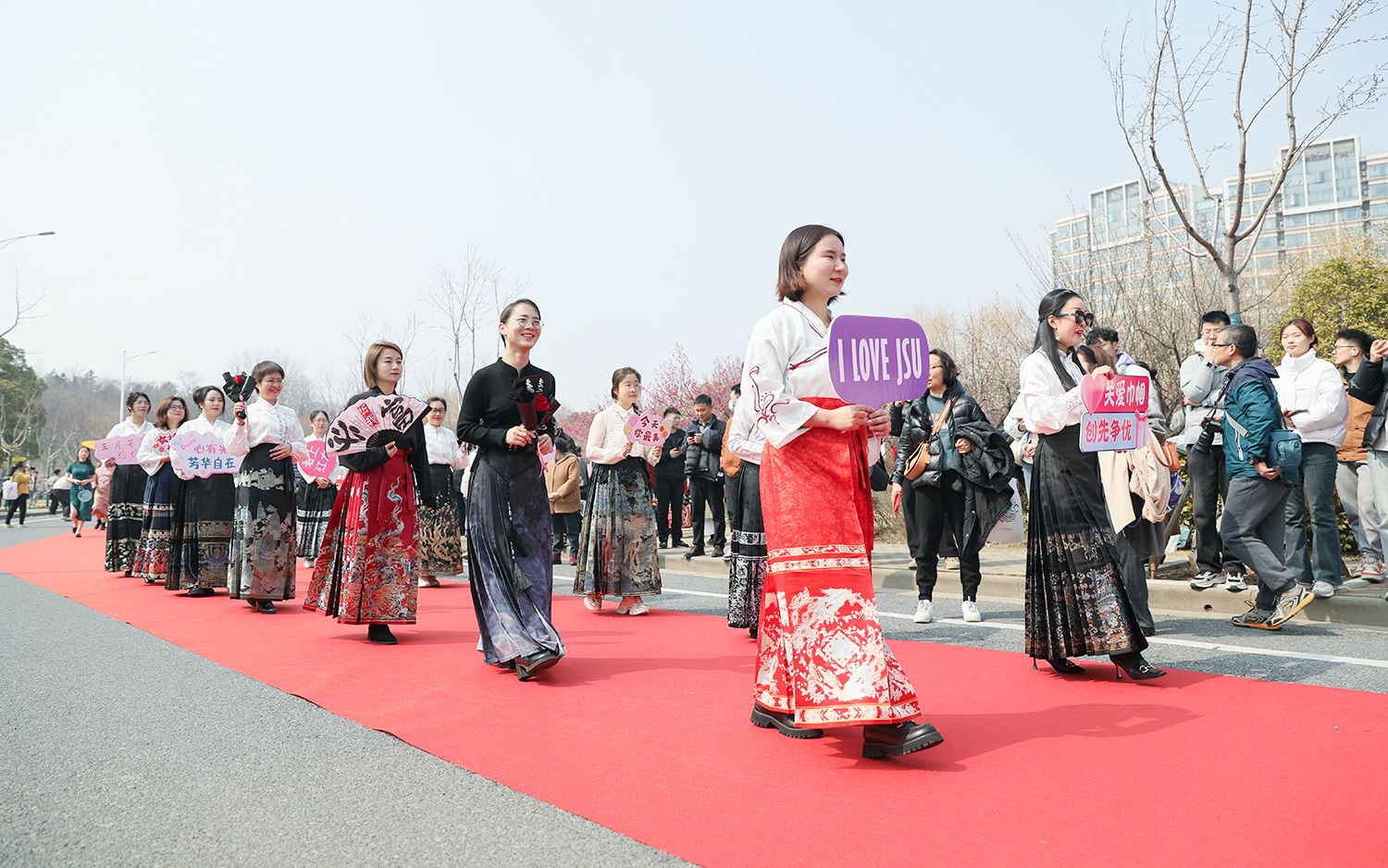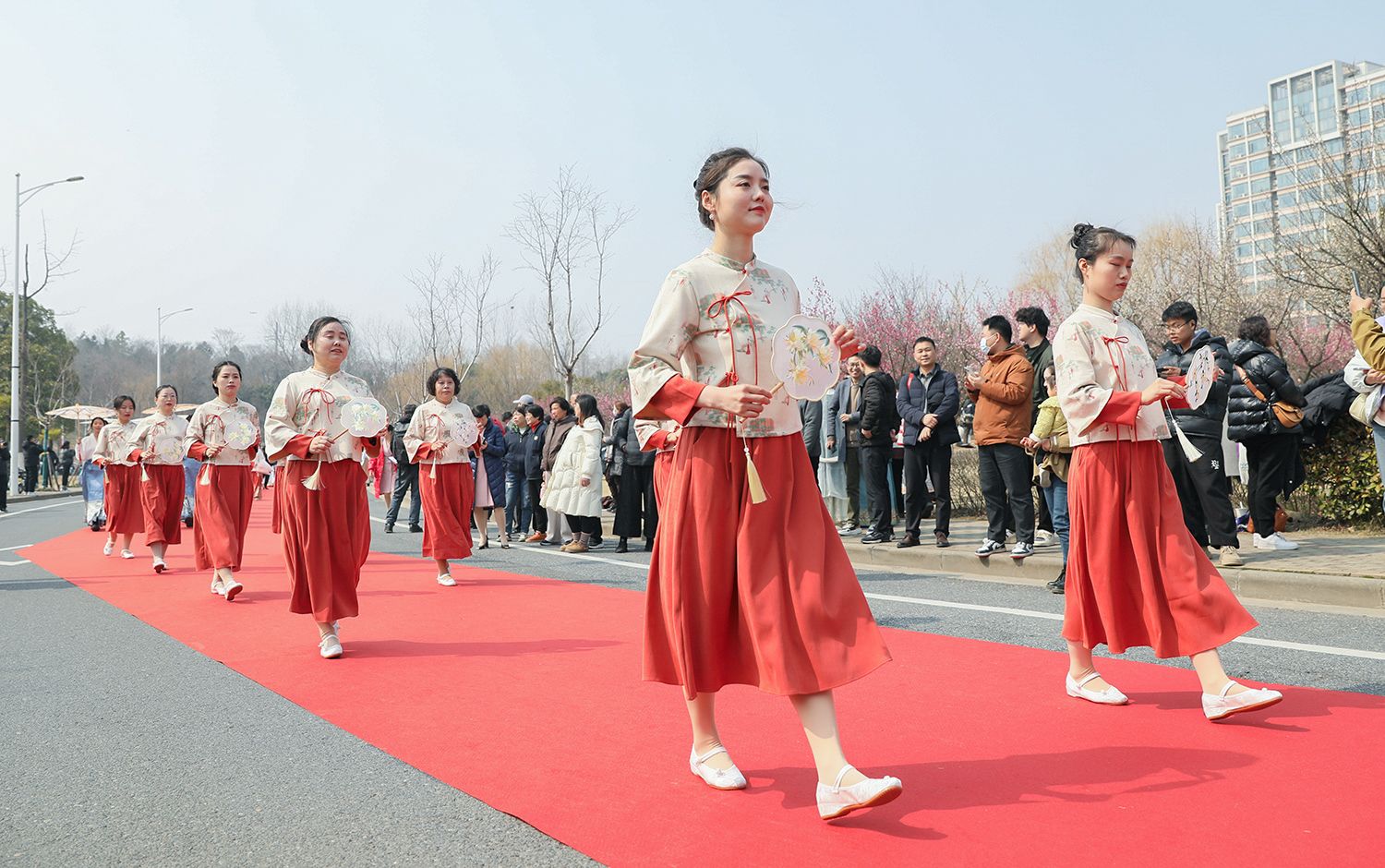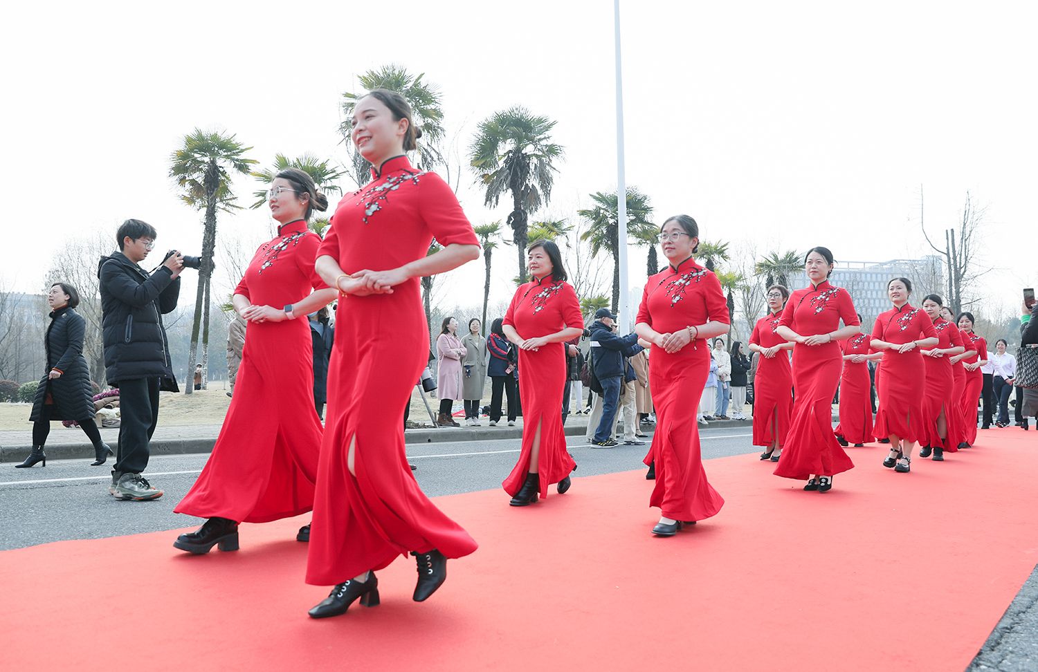 早春江大,處處是生機勃勃的景象。3月8日,是第114個國際勞動婦女節,學校在梅園舉辦“美麗邂逅,夢想綻放”慶祝“三八”國際婦女節活動暨首屆梅櫻節開幕式。由女教工、女大學生、女企業家組成的33支隊伍共聚梅園,借滿園春色,用“紅毯秀”的形式展示女性風采,慶祝自己的節日。