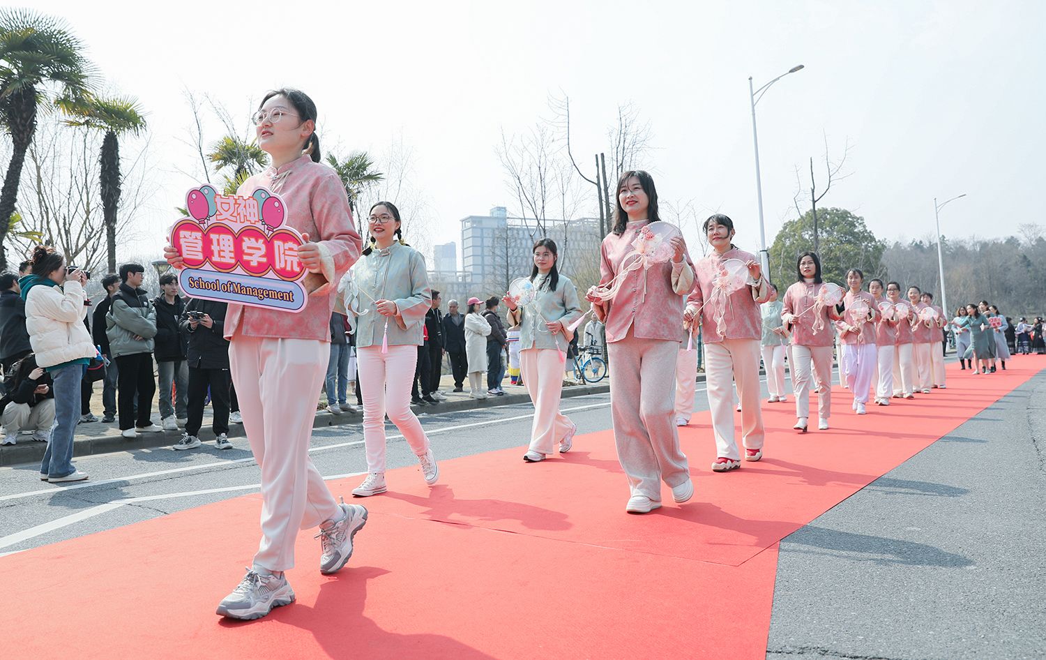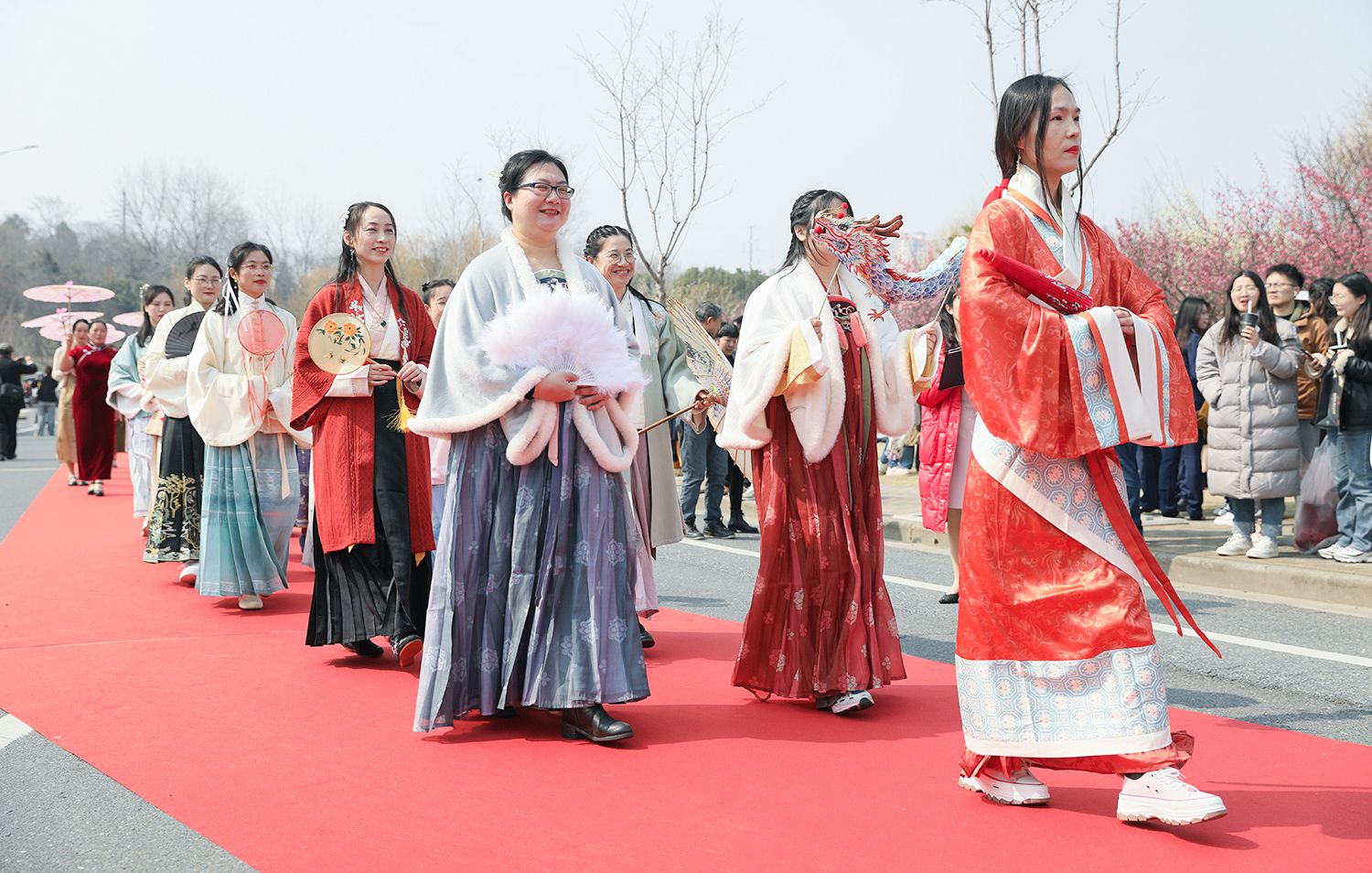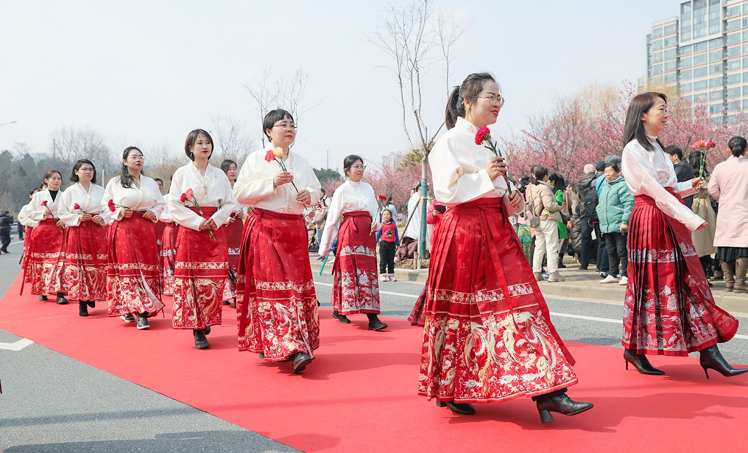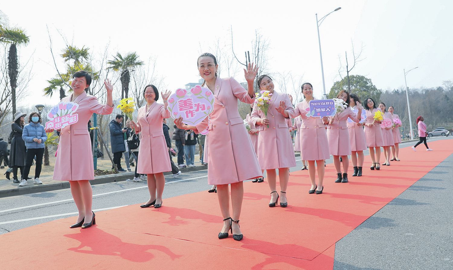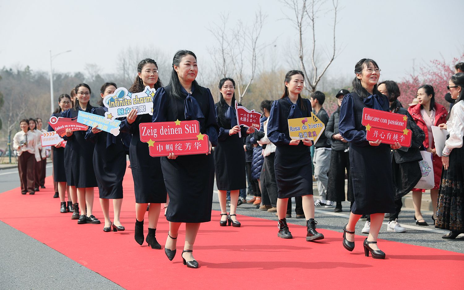 早春江大,處處是生機勃勃的景象。3月8日,是第114個國際勞動婦女節,學校在梅園舉辦“美麗邂逅,夢想綻放”慶祝“三八”國際婦女節活動暨首屆梅櫻節開幕式。由女教工、女大學生、女企業家組成的33支隊伍共聚梅園,借滿園春色,用“紅毯秀”的形式展示女性風采,慶祝自己的節日。