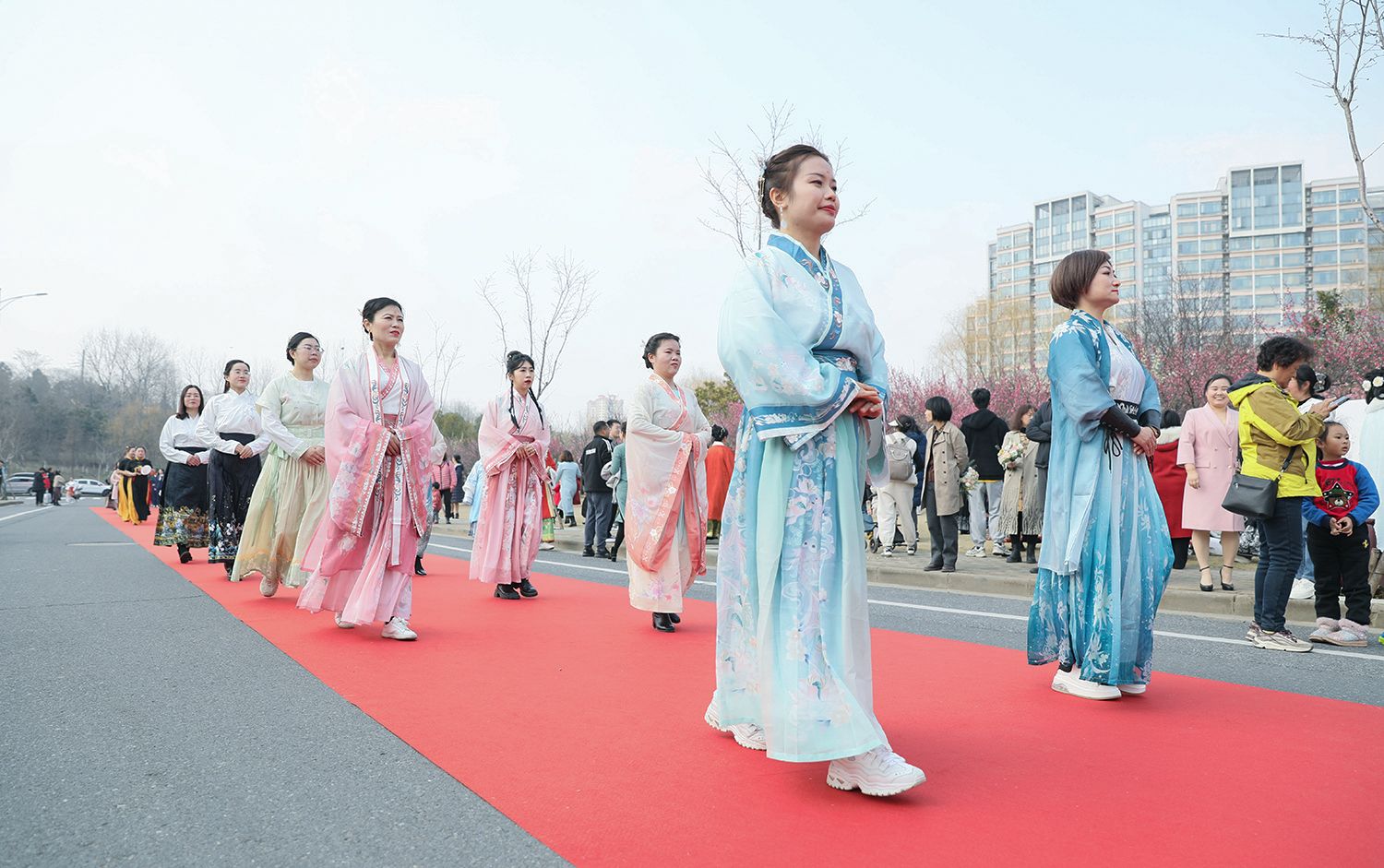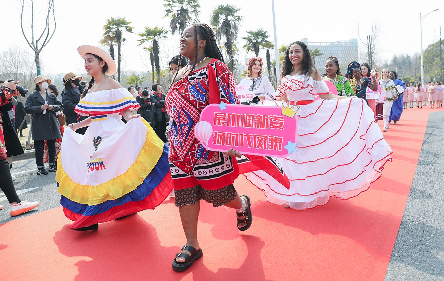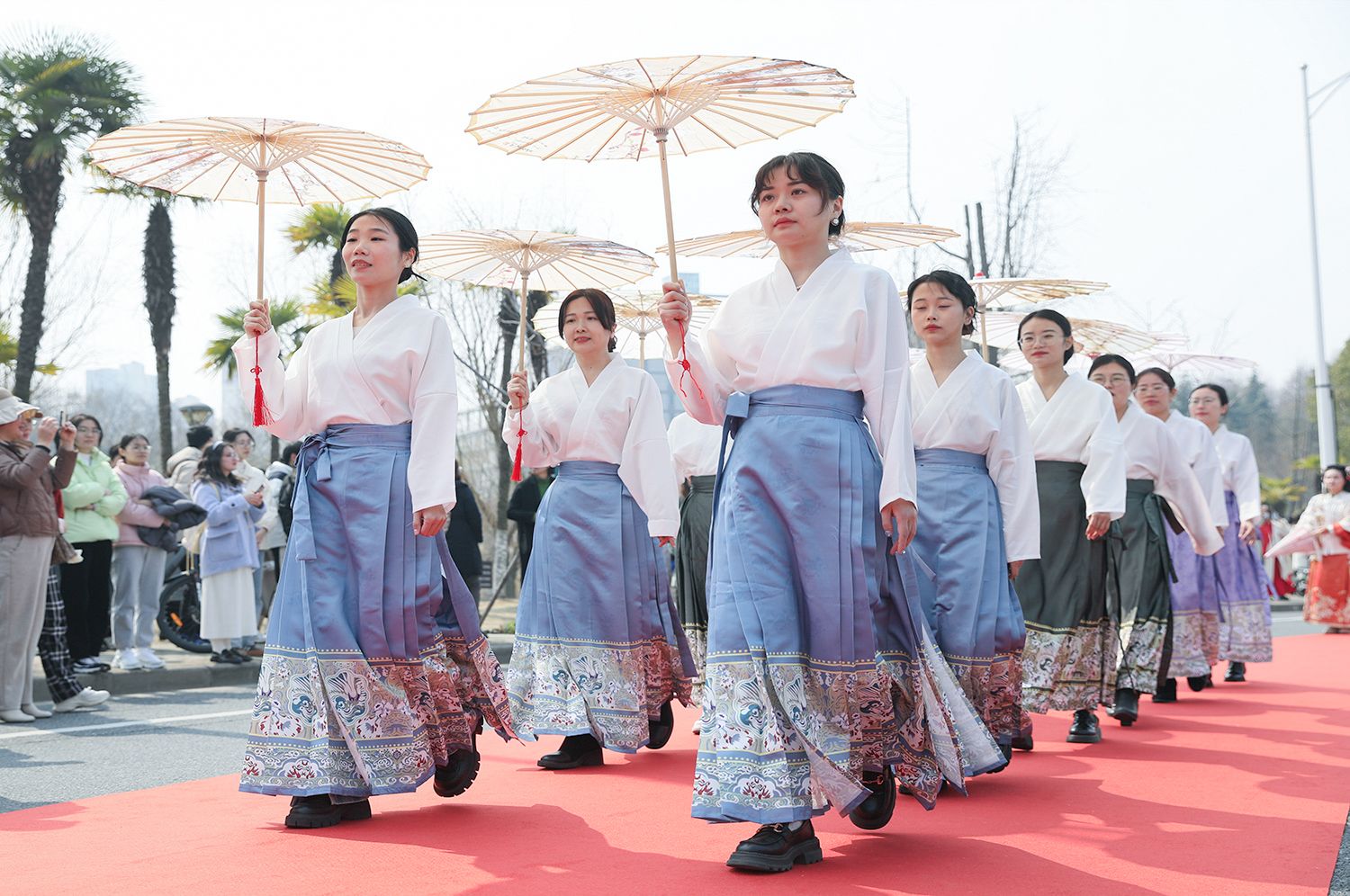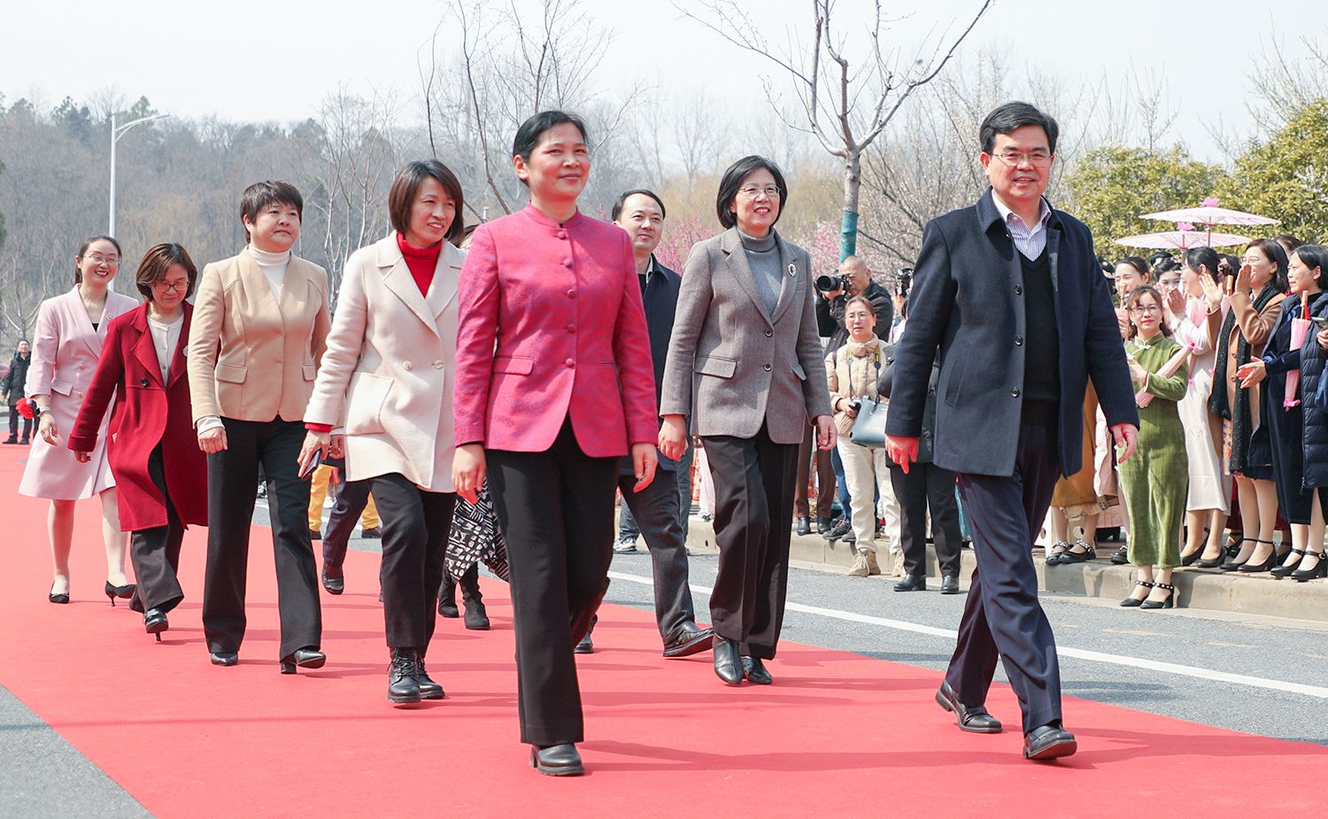 早春江大,處處是生機勃勃的景象。3月8日,是第114個國際勞動婦女節,學校在梅園舉辦“美麗邂逅,夢想綻放”慶祝“三八”國際婦女節活動暨首屆梅櫻節開幕式。由女教工、女大學生、女企業家組成的33支隊伍共聚梅園,借滿園春色,用“紅毯秀”的形式展示女性風采,慶祝自己的節日。
