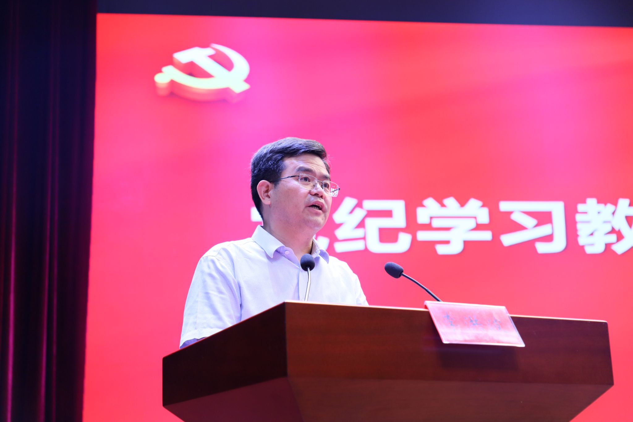李洪波在主持報告會時,就學校進一步深入開展黨紀學習教育提了三點要求。一是持續在“三個學習”下功夫,推動《條例》入腦入心。要強化示范引領學、深化導學研學、抓好聯學聯建,三級黨組織書記要帶頭學、領銜學,運用導學、研學、述學等形式,以聯學共建等形式強化《條例》學習指導、督導,組織黨員干部師生繼續原原本本學、逐條逐章學、聯系實際學,在深學細悟中提升思想認識、筑牢廉潔防線,確保《條例》學習取得好成效。二是持續在“三個關鍵”上下功夫,推動黨紀學習教育走深走實。要進一步抓好關鍵群體、抓好關鍵內容、抓好關鍵環節,三級黨組織和三級黨組織書記要切實發揮帶頭示范作用,抓好“一把手”、處級干部、年輕干部、新入職黨員、畢業生黨員、離退休黨員等重點群體黨紀學習教育,一體推進黨性黨風、校風學風、師德師風等建設,一體抓好黨員干部警示教育、黨組織書記講黨課等規定動作、關鍵事項,持續抓好黨紀學習教育關鍵重點,以點帶面切實推動黨紀學習教育各項部署落地落實。三是持續在“三個結合”上下功夫,推動黨紀學習教育見行見效。要把黨紀學習教育同鞏固拓展主題教育成果、推進“一融雙高”結合起來,同縱深推進全面從嚴治黨結合起來,同貫徹落實學校第五次黨代會精神結合起來,推動黨紀學習教育深度融入干部隊伍建設、黨委巡察、黨建“雙創”、黨員基本培訓、師德師風建設等各項工作中,持續加強紀律監察體系建設和隊伍建設,著力推動政治監督具體化精準化常態化,著力推動黨紀學習教育與管黨治校有機結合、深融互促,引領黨員干部師生以更加強烈的使命感、責任感和更加昂揚的精氣神投身學校事業發展,大力推進落實事業高質量發展“六大行動”,努力為學校加快推進“雙一流”創建和特色鮮明高水平大學建設作出更大貢獻。