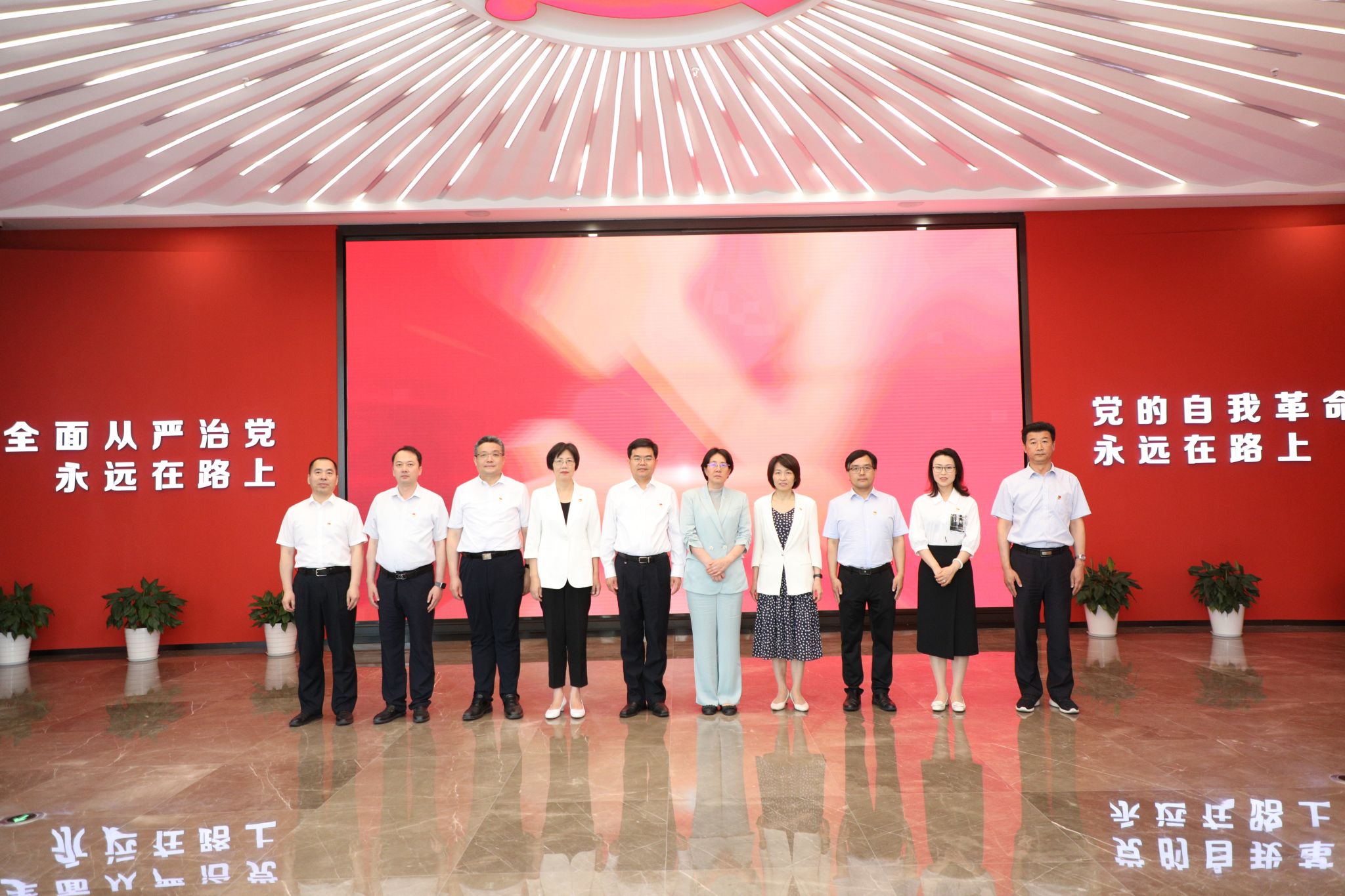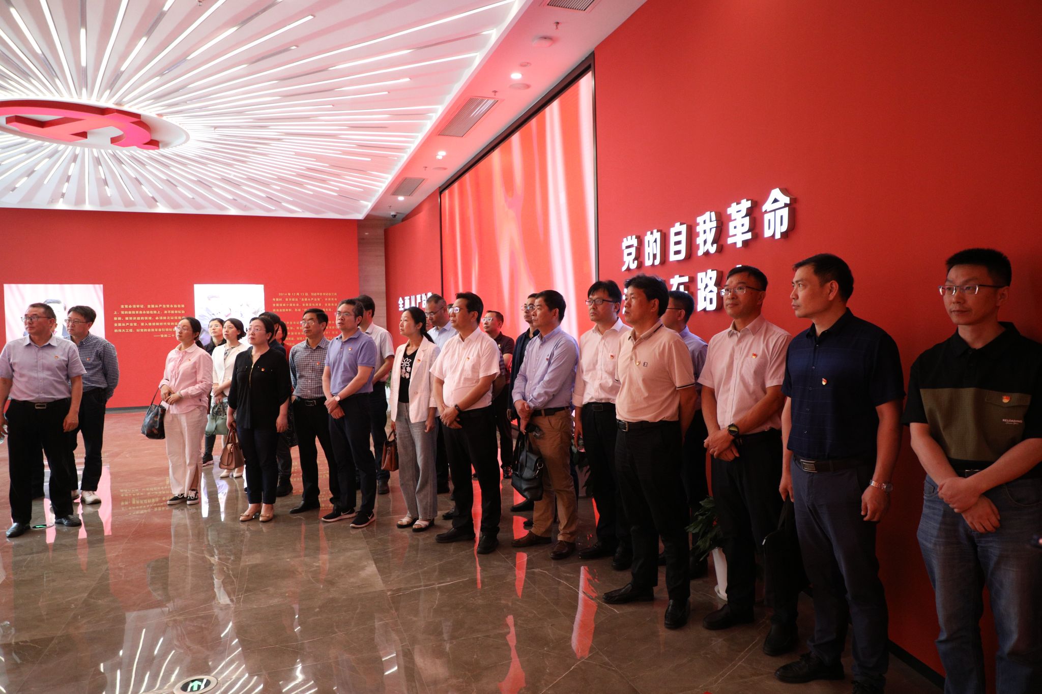 在警示教育一樓大廳,大家觀看了廉政教育短片《永遠吹沖鋒號》。在講解員的引導下,全體人員先后參觀了“舉旗定向 指路領航”“以案明紀 挺紀在前”“以案促改 系統施治”“以案為鑒 警鐘長鳴”等主題展區,通過圖文、實物、案例再現等生動鮮活的沉浸式黨紀學習教育,全體人員深刻感受到黨的十八大以來,以習近平同志為核心的黨中央堅定不移推進全面從嚴治黨,開辟了百年大黨自我革命的新境界,以及省黨風廉政建設和反腐斗爭的做法與成效。