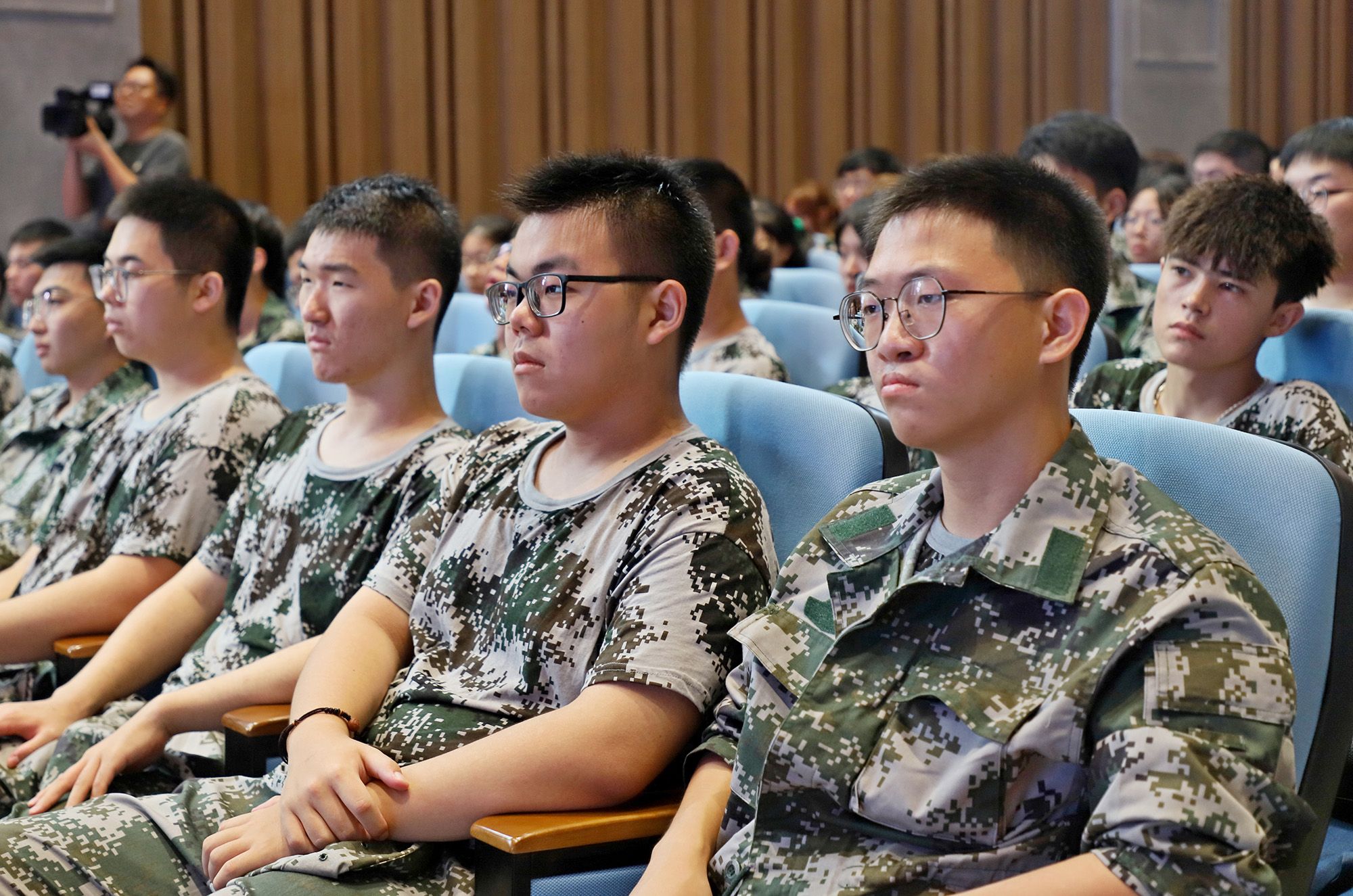 除部分本科新生代表和新生輔導員在大禮堂主課堂線下聽課外,江蘇大學官方微信視頻號對第一課進行了線上直播,其余本科新生及研究生新生線上聽課。(黨委宣傳部)