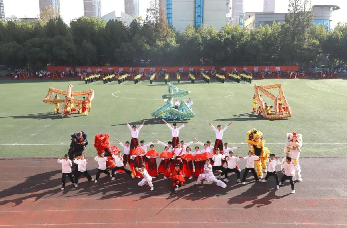 開幕式上,師生表演了龍獅、武術、團體操和彩帶龍等文體節目。