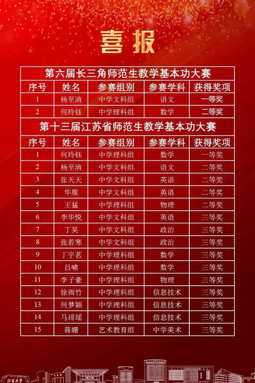 近日,第六屆長三角師范生教學基本功大賽落幕。我校學生表現優異,師范生楊至清榮獲中學語文組一等獎,何玲鈺榮獲中學數學組二等獎。