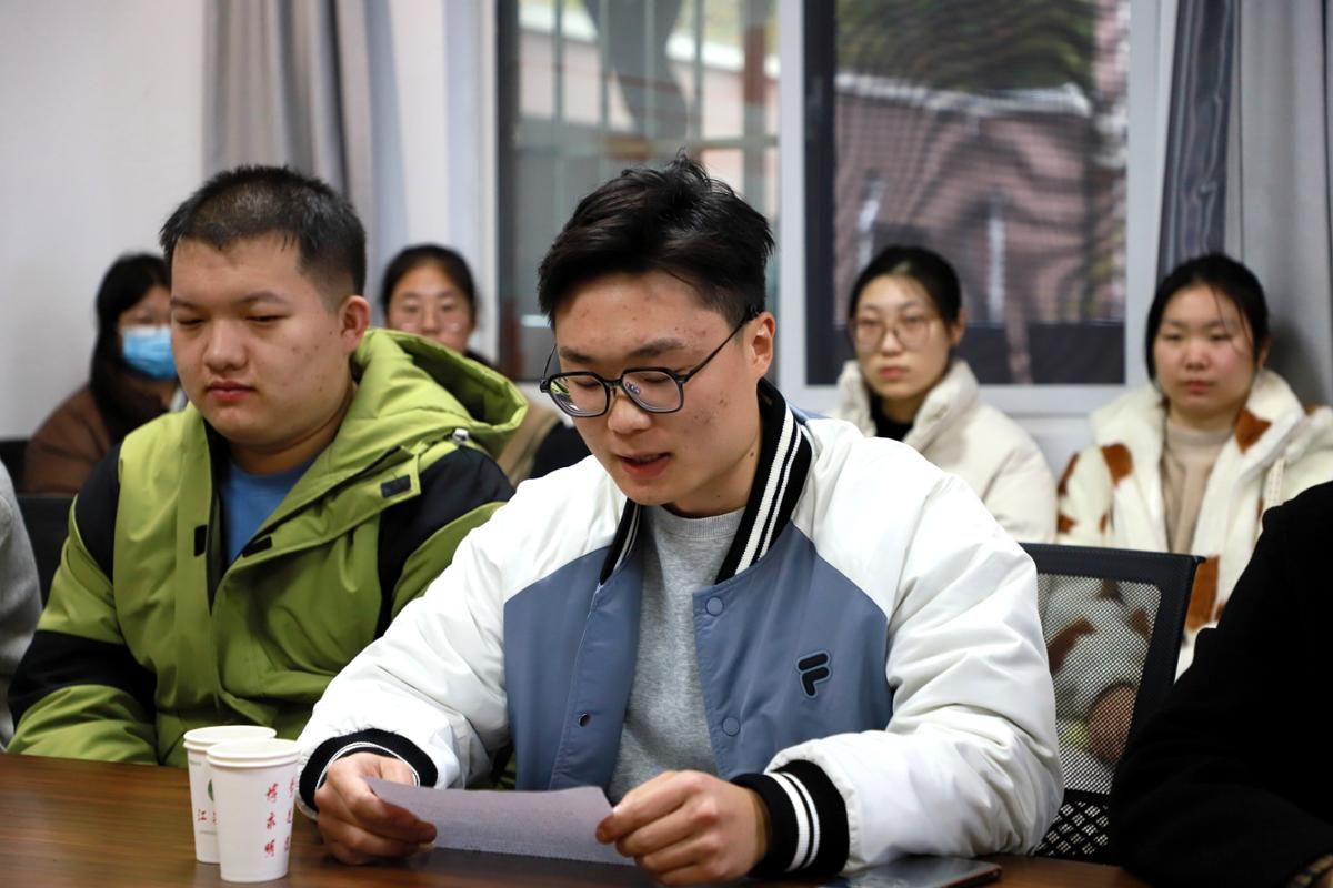 活動中,管理學院本科生黨員俞倩霞分享了自己的成長經歷,匯報了自己經過不斷努力已成功保研至上海大學,也介紹了支部的組織生活情況。管理學院物流2202班班長杜鈺靈表示,班級同學目標明確,在班風學風建設、科研比賽、創新能力等方面均有所突破,超過半數的同學都在為考研、考公或就業做準備,班風學風良好。財經學院金融2102班陳楚汶匯報了宿舍發展情況,并介紹了自己努力參加科研比賽、社會實踐和志愿服務經歷,現已成功保研至中國海洋大學。