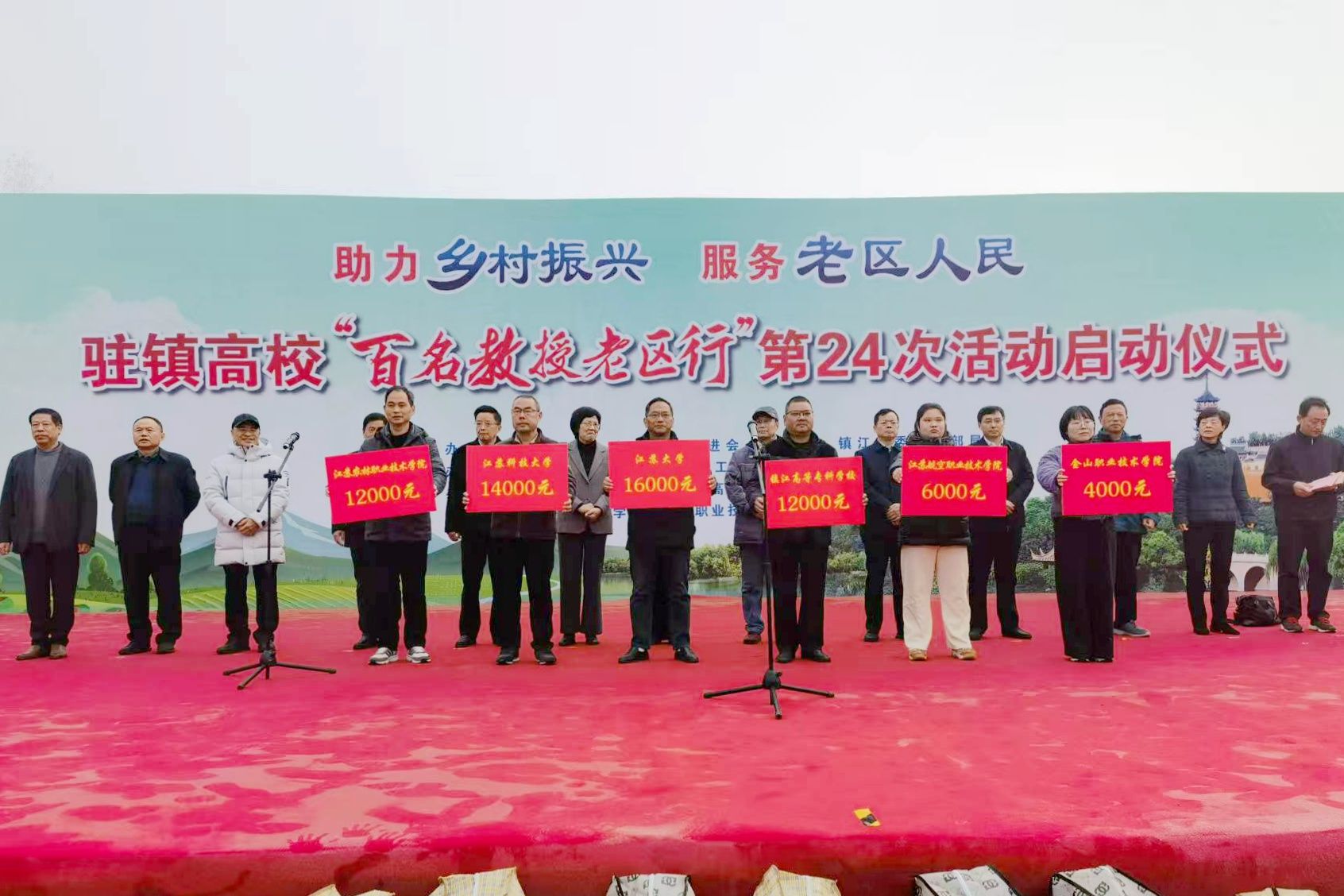 駐鎮高校“百名教授老區行”活動由我校發起,聯合江蘇科技大學等六所駐鎮高校參加。活動中,我校向天王鎮8名困難家庭優秀學子捐款16000元,向當地村民捐贈軍訓服500余套、日常藥品若干。我校附屬醫院8名老專家為天王鎮居民進行義診。同時,關工委開設寫春聯、科技咨詢臺,為居民提供寫春聯服務和科技支持。關工委合唱團表演了女聲小合唱《萱草花》, “心連心”藝術團表演了舞蹈《中國夢》。系列活動受到現場群眾的一致好評。