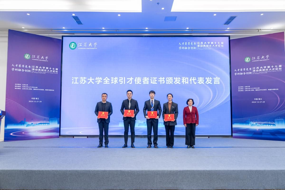 學(xué)校面向英國(guó)、澳大利亞、日本、新加坡等國(guó)家或地區(qū)青年人才首次招募8名“全球引才使者”,通過以才引才匯聚海外優(yōu)質(zhì)人才資源。開幕式上,張娟為現(xiàn)場(chǎng)參加論壇的4位“全球引才使者”頒發(fā)證書,引才使者代表,第十三屆中華全國(guó)青年聯(lián)合會(huì)委員、日本東京工業(yè)大學(xué)博士楊東瀛進(jìn)行發(fā)言。