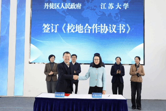 12月31日,江蘇大學與丹徒區政府校地合作協議簽署儀式在北汽藍谷麥格納汽車有限公司舉行。校黨委書記李洪波,副校長李紅、蔡英鳳,丹徒區委書記毛健、丹徒區區長呂朝霞出席活動。