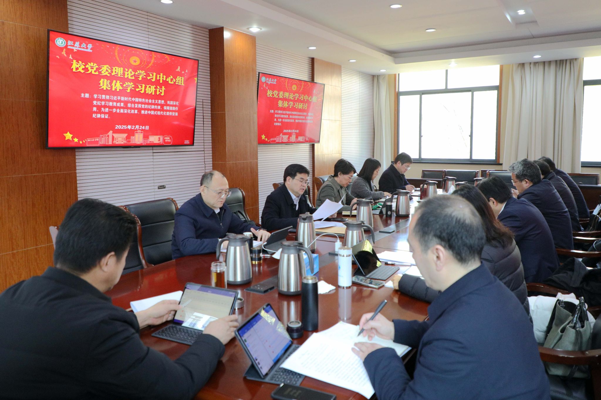 2月24日,校黨委理論學習中心組在行政一號樓201會議室開展2月份集體學習研討暨黨委領導班子民主生活會前專題學習。學習圍繞學習貫徹習近平新時代中國特色社會主義思想,鞏固深化黨紀學習教育成果,綜合發揮黨的紀律教育約束、保障激勵作用,為進一步全面深化改革、推進中國式現代化提供堅強紀律保證主題展開。在校校黨委理論學習中心組成員參加學習,集體學習研討由校黨委書記李洪波主持。