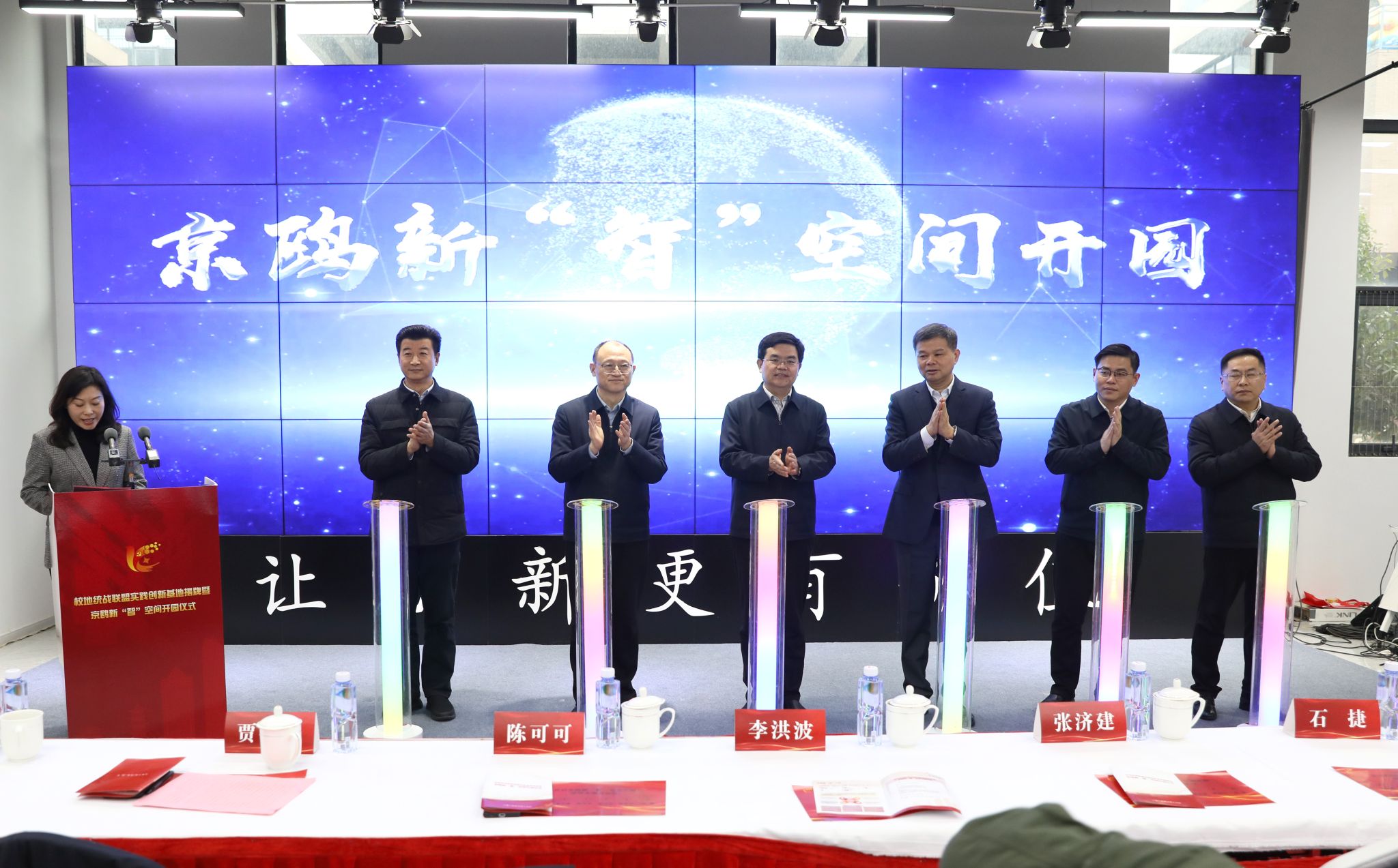 教務(wù)處、藝術(shù)學(xué)院、計(jì)算機(jī)學(xué)院、汽車工程研究院與大禹山數(shù)字文創(chuàng)區(qū)簽訂校地創(chuàng)新合作協(xié)議,學(xué)校10名統(tǒng)戰(zhàn)成員負(fù)責(zé)的項(xiàng)目簽約入駐京鷗新“智”空間。