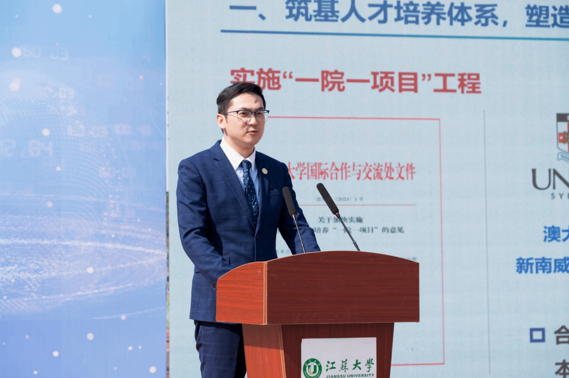在海外學習成果交流環節,新東方國際教育事業部作留學大數據解析,學工處、國際處聯合發布江蘇大學海外學習成果數據報告,海外項目優秀學子張如意分享學習心得與感悟。