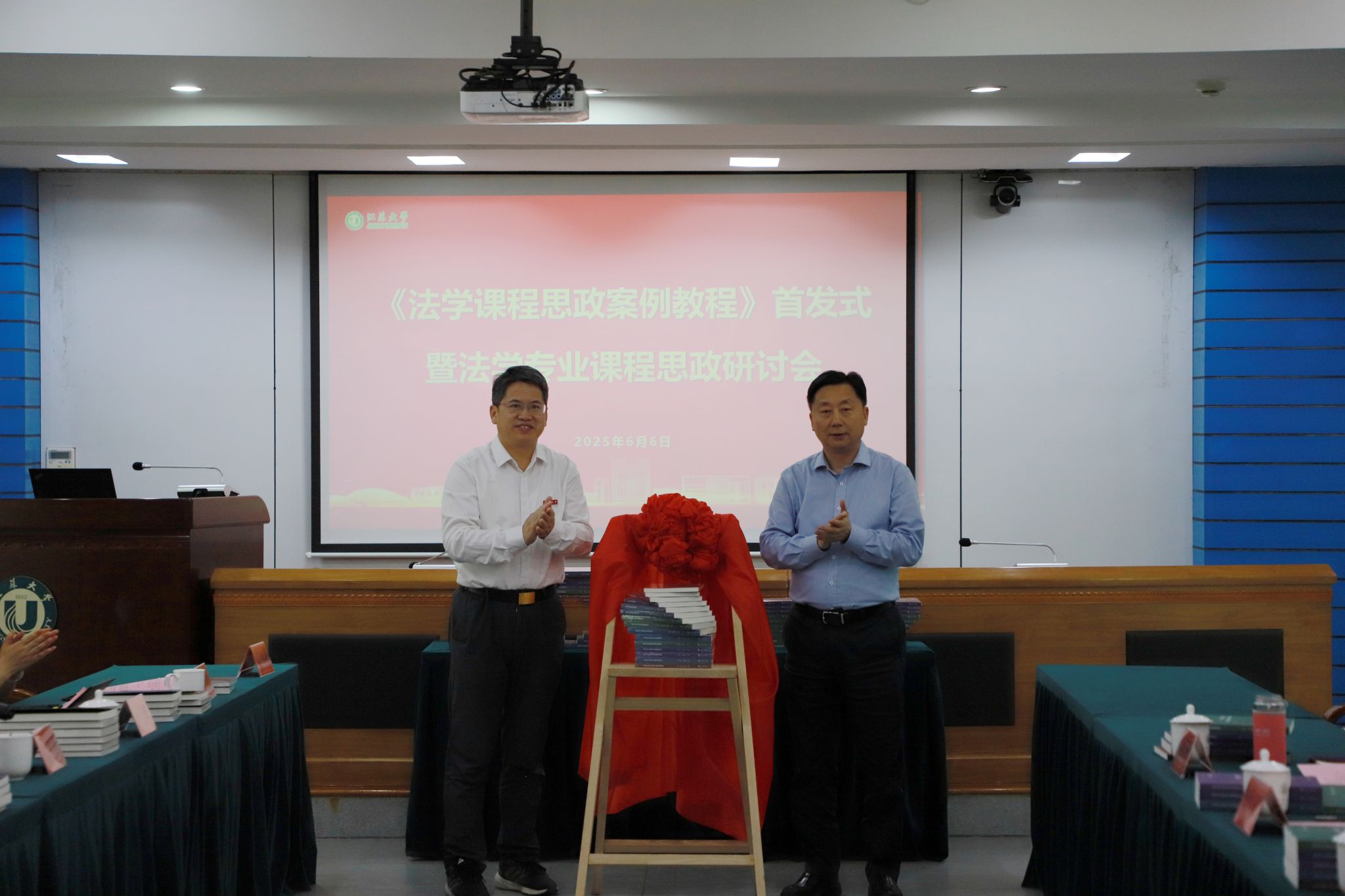 夏錦文與鄒小波共同為《法學(xué)課程思政案例教程》首發(fā)揭彩。