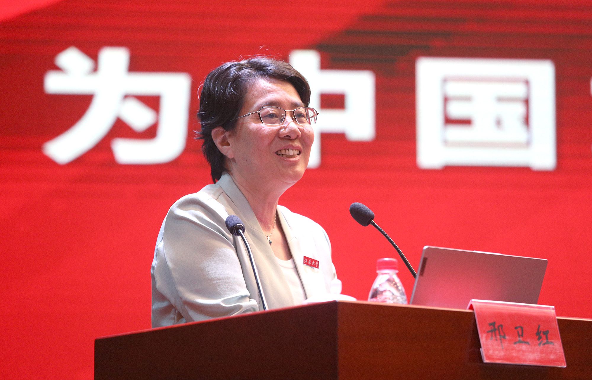 邢衛紅以《自信自強 奮楫爭先 為中國式現代化建設貢獻青春力量》為題,為畢業生講授最后一堂思政課。她帶領大家重溫了習近平總書記關于青年工作的重要講話精神,結合“博學、求是、明德”江大校訓和“自強厚德,實干求真”江大精神,從“強信念、樹理想,筑牢信仰之基”“強本領、長才干,永葆奮斗姿態”“強擔當、善作為,爭創卓越新功”三個方面與大家進行了分享交流。
