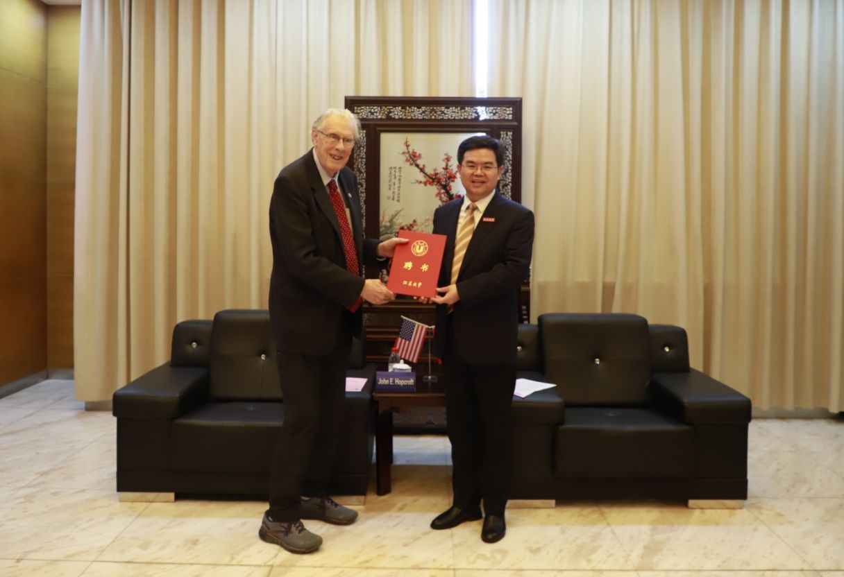 7月7日,圖靈獎獲得者、中華人民共和國國際科學技術合作獎獲得者、中國政府友誼獎獲得者、中國科學院外籍院士、美國國家科學院院士、美國國家工程院院士、美國藝術與科學院院士約翰·愛德華·霍普克羅夫特教授到訪我校,并與師生進行對話。