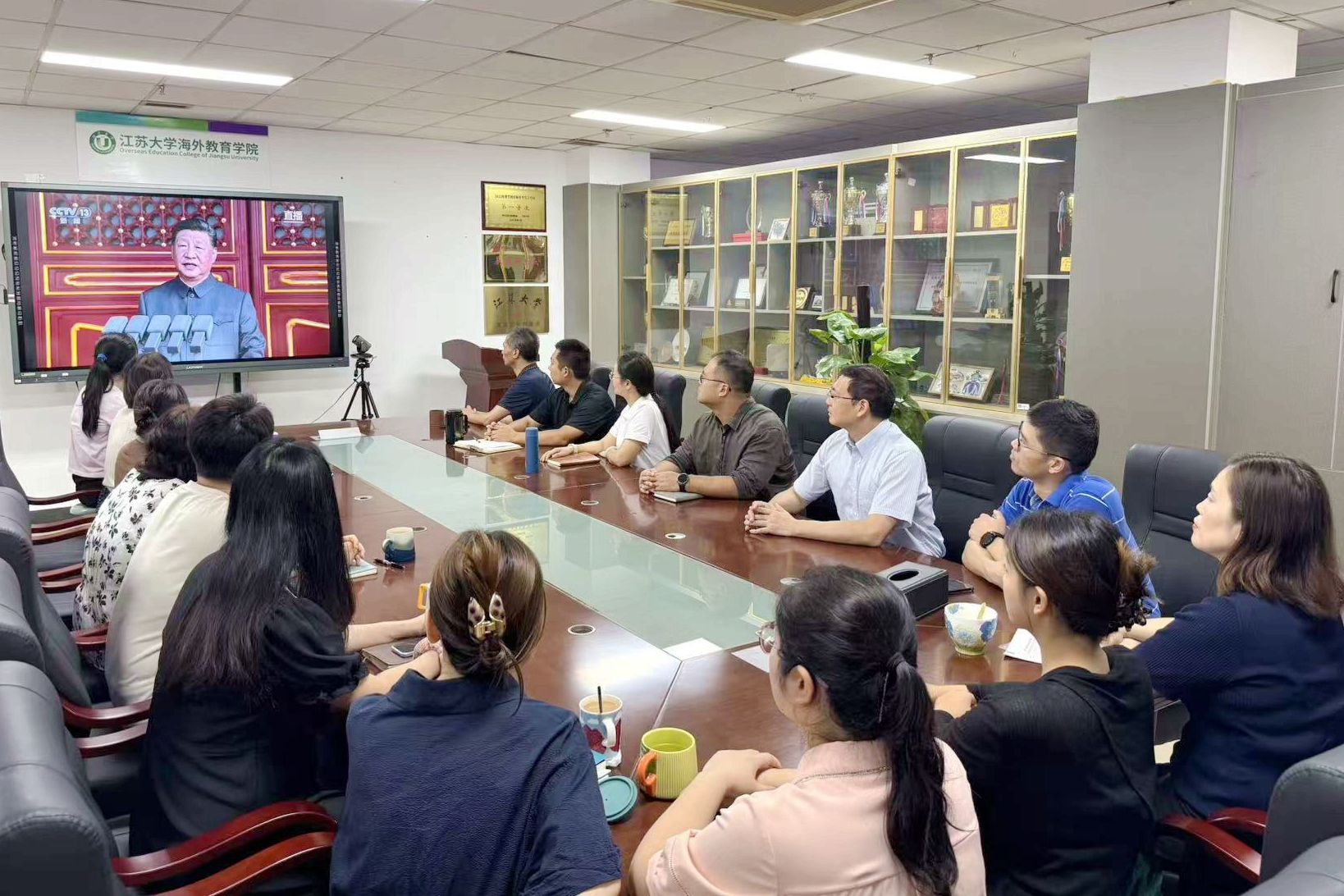 上午9時,大會正式開始。隨著莊嚴的國歌聲響起,主會場內師生全體起立,齊唱國歌。在聆聽習近平總書記重要講話時,現場師生神情肅穆,認真記錄;當受閱方(梯)隊經過天安門廣場時,收看現場不時響起熱烈掌聲。