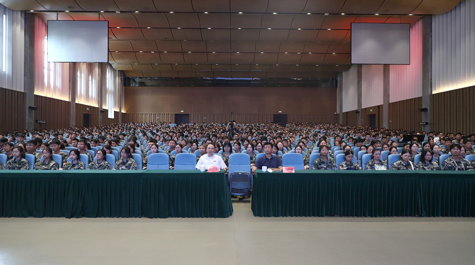 新生開學(xué)第一課采用線上線下相結(jié)合的形式講授,部分本科新生代表和新生輔導(dǎo)員在大禮堂主課堂線下聽課,其余本科新生及研究生新生通過學(xué)校官方視頻號收看直播授課。(黨委宣傳部)
