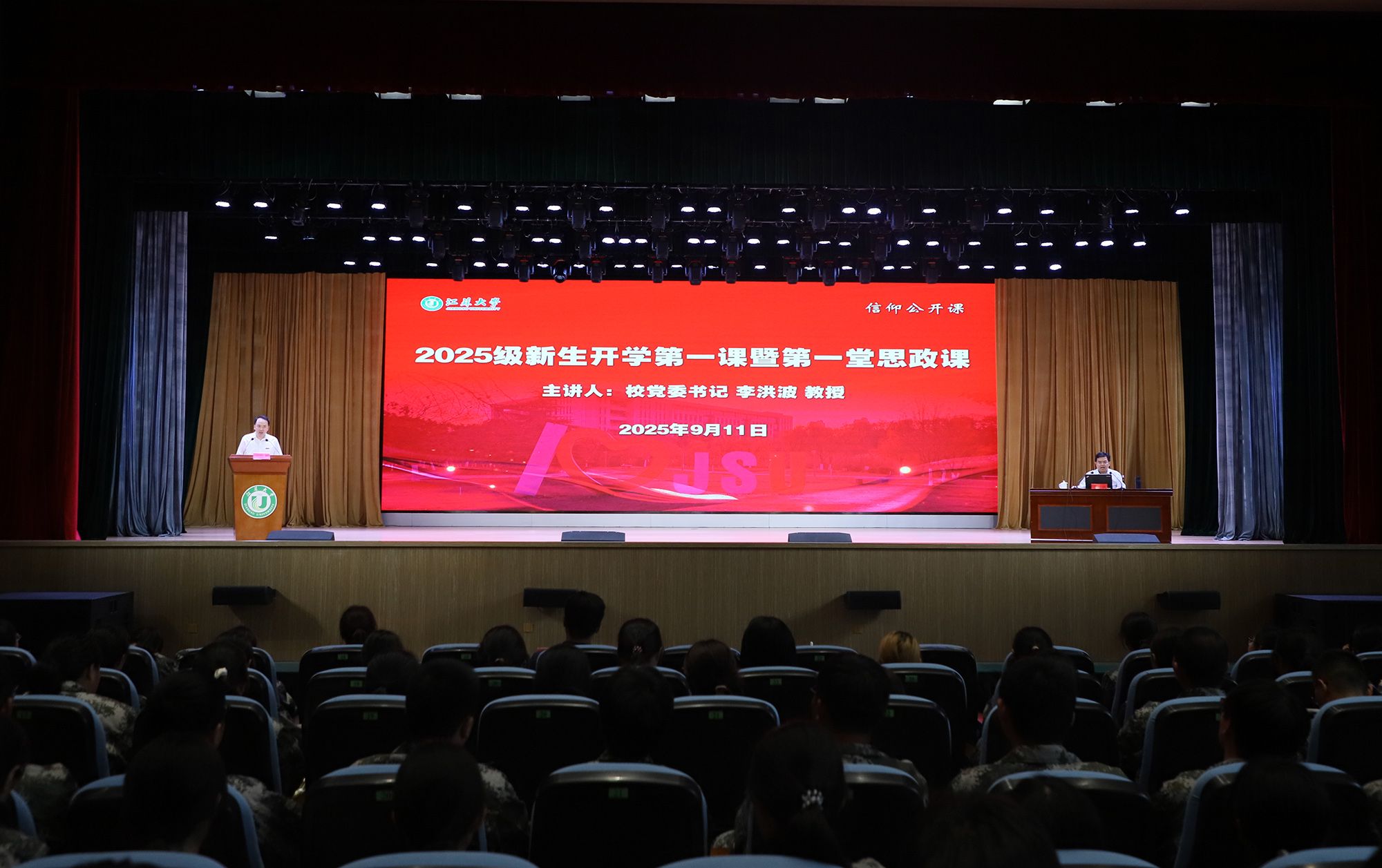 9月11日,學(xué)校舉辦2025級新生開學(xué)第一課暨第一堂思政課,校黨委書記李洪波以《筑夢青春 逐夢未來 做情系家國、奮發(fā)進(jìn)取、追求卓越的江大人》為題,為全體新生授課,引導(dǎo)新生將個(gè)人理想融入國家發(fā)展,與學(xué)校共同成長,扣好大學(xué)的“第一粒扣子”。