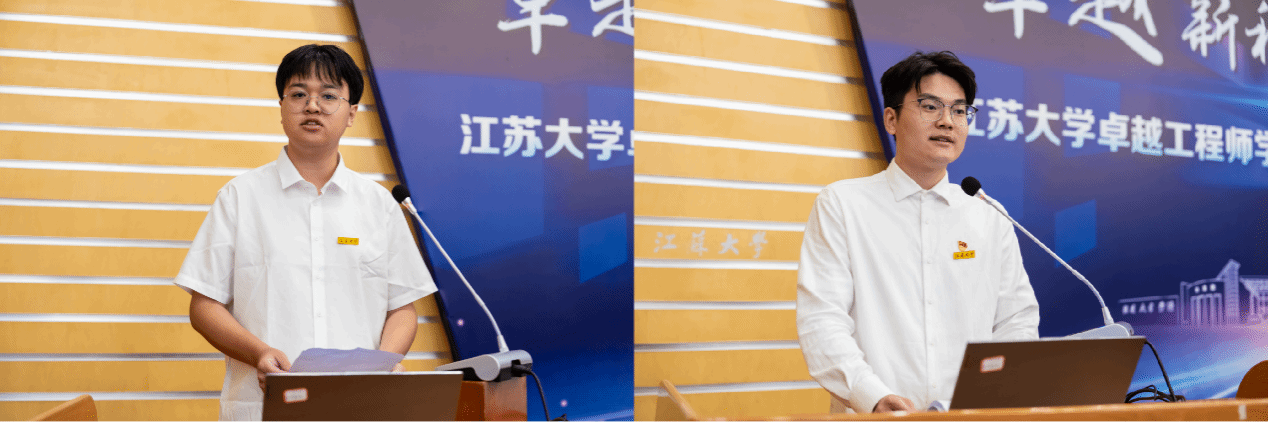 師生代表發言環節,農工學院與沃得農機聯合培養的新生代表李曾耀、流體中心與中國科學院工熱所聯合培養的新生代表邢富榮分別表達了對未來學習科研和入企實踐的期待,以及“工程賦能、科技報國”的志向。材料學院“先進材料設計及性能調控”卓工團隊羅銳作為校內導師代表發言,結合多年與企業圍繞創新人才培養、科技創新攻關的產教融合實踐,闡述了只有“真問題”才能“育工匠”的精神。企業導師代表、奇瑞汽車總工程師劉冶鋼博士結合豐富的國際與行業經驗,從產業視角強調了工程實踐與創新能力的重要性,鼓勵同學們積極參與校企合作,充分利用產學研協同平臺,成長為符合行業急需的高層次工程人才。