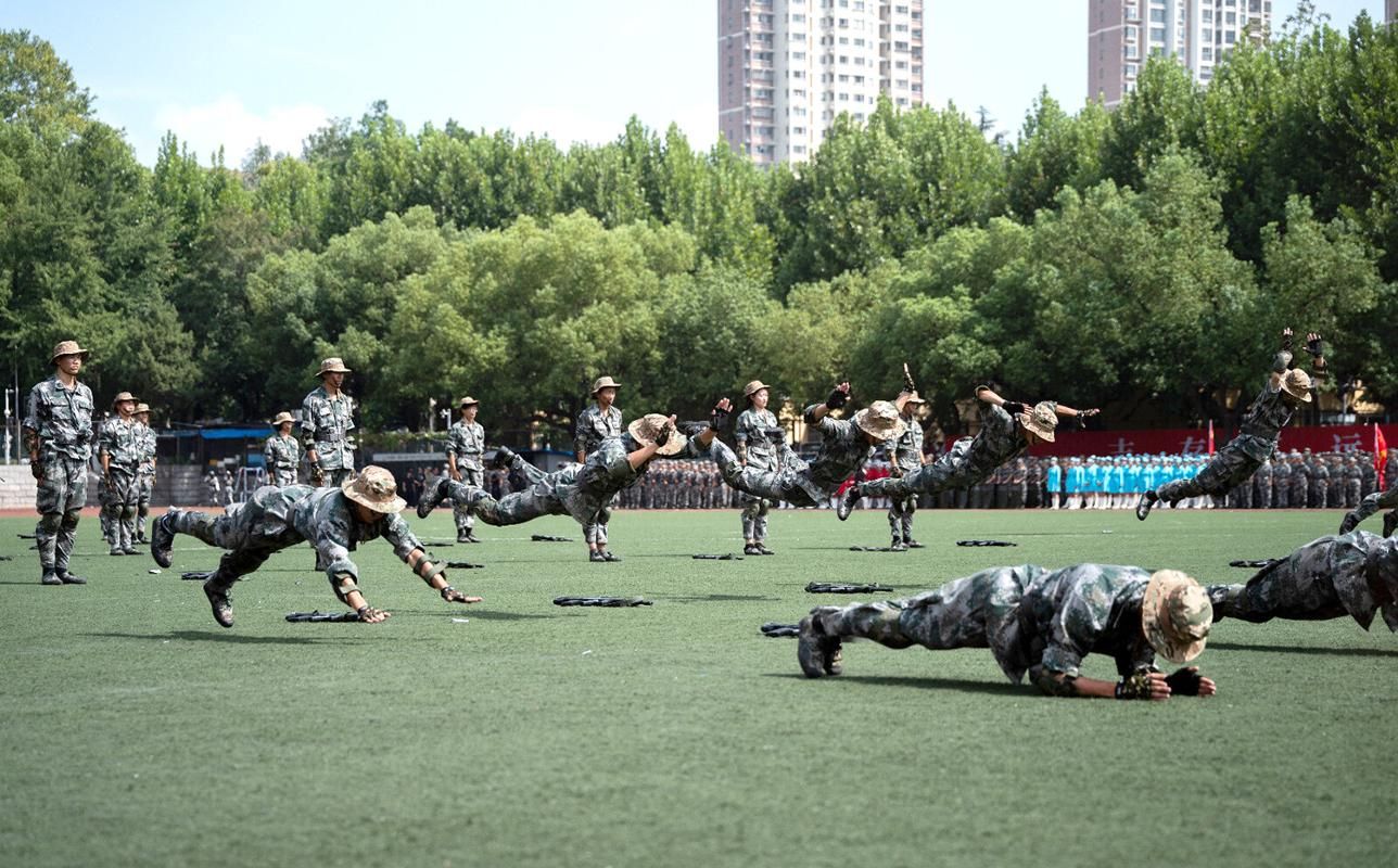 軍事格斗組合、“江大利刃”戰斗突擊方隊等軍訓特色課目進行了匯報展示。