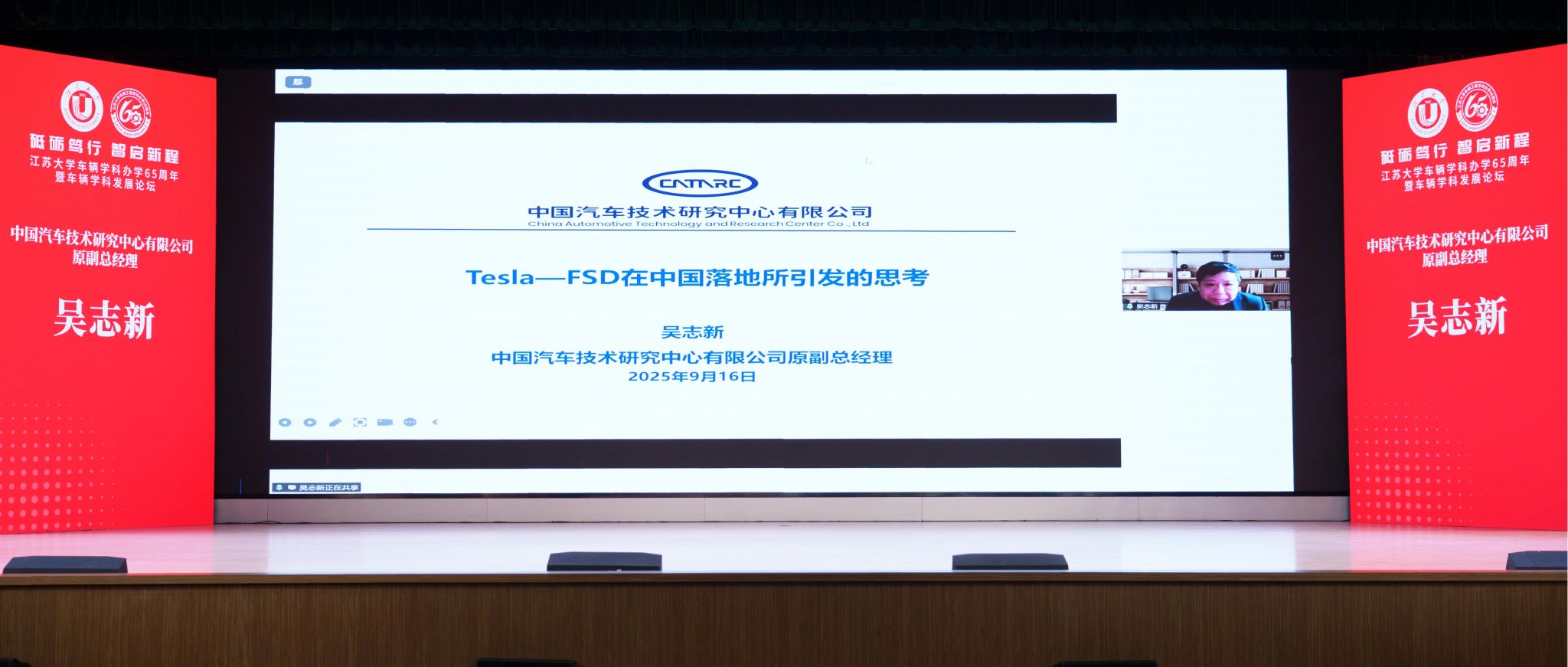 論壇上,工業(yè)和信息化部裝備工業(yè)司原一級巡視員錢明華校友、中國汽車技術(shù)研究中心有限公司原副總經(jīng)理吳志新校友、蔡英鳳分別從中國汽車工業(yè)的發(fā)展現(xiàn)狀與展望、Tesla-FSD在中國落地所引發(fā)的思考、江蘇大學(xué)車輛學(xué)科建設(shè)與發(fā)展規(guī)劃等方面作主旨報(bào)告。