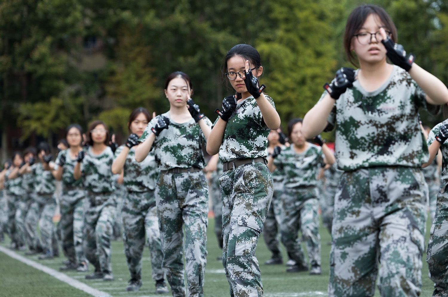 分列式環(huán)節(jié),3個特色方隊和12個軍訓(xùn)營方隊一一從主席臺前經(jīng)過;軍體拳、格斗術(shù)、匕首操等軍訓(xùn)特色課目依次匯報展示。