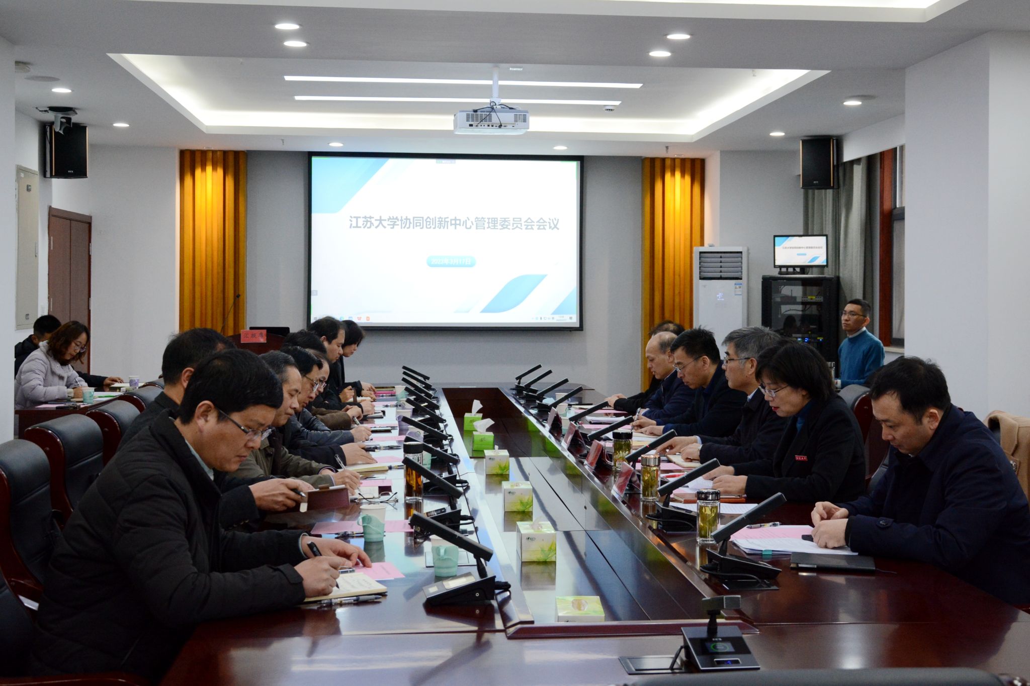 3月17日,學校在耒耜大樓舉行2023年度協同創新中心管理委員會會議。省教育廳科學技術與產業化處處長韓葉祥,校黨委書記袁壽其、校長顏曉紅出席會議。會議以線上線下相結合方式舉行,副校長李紅主持會議。