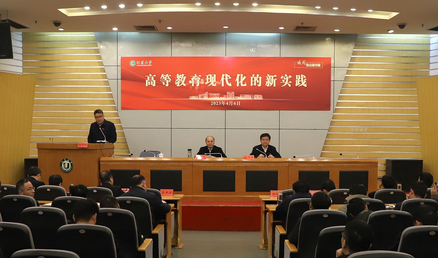 4月6日,校長顏曉紅、校黨委副書記李洪波走進(jìn)校園熱點(diǎn)面對(duì)面之“高等教育現(xiàn)代化的新實(shí)踐”活動(dòng)現(xiàn)場,與老師們面對(duì)面交流,圍繞如何夯實(shí)大學(xué)的歸依,探索行業(yè)特色地方高校的高等教育現(xiàn)代化特色發(fā)展之路,在中國科教體系中傳遞江大模式、江大方案進(jìn)行現(xiàn)場釋疑解惑。校黨委常委、宣傳部部長楊道建主持活動(dòng)。