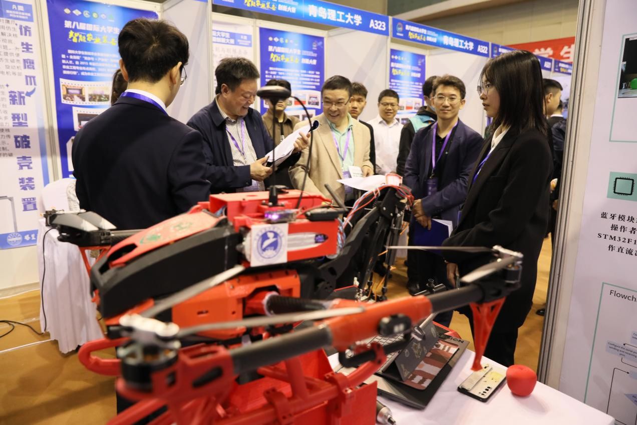 在展會現場,ACD類作品現場演示匯報,專家進行了現場問辯;B類作品開展了現場競技。
