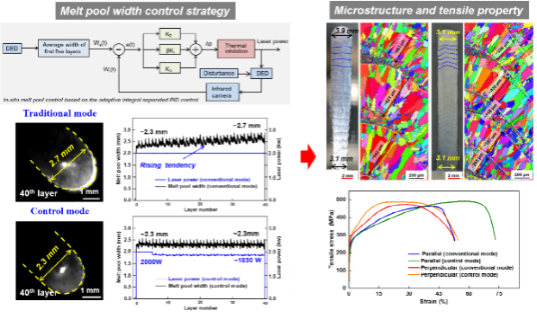 該研究成果提出了一種熔池原位控制輔助激光定向能量沉積工藝(ISTC-LDED),推導了以經典熱傳導理論為基礎的平面和曲面薄壁件熱效應模型,該技術闡明了層間柱狀晶和等軸晶的連續演化機制并實現了構件厚度一致性。同時,ISTC-LDED技術誘導的316L不銹鋼孿晶塑性變形效應可以顯著提升強韌性。博士生蘇尤宇為第一作者,羅開玉教授、魯金忠教授為通訊作者。